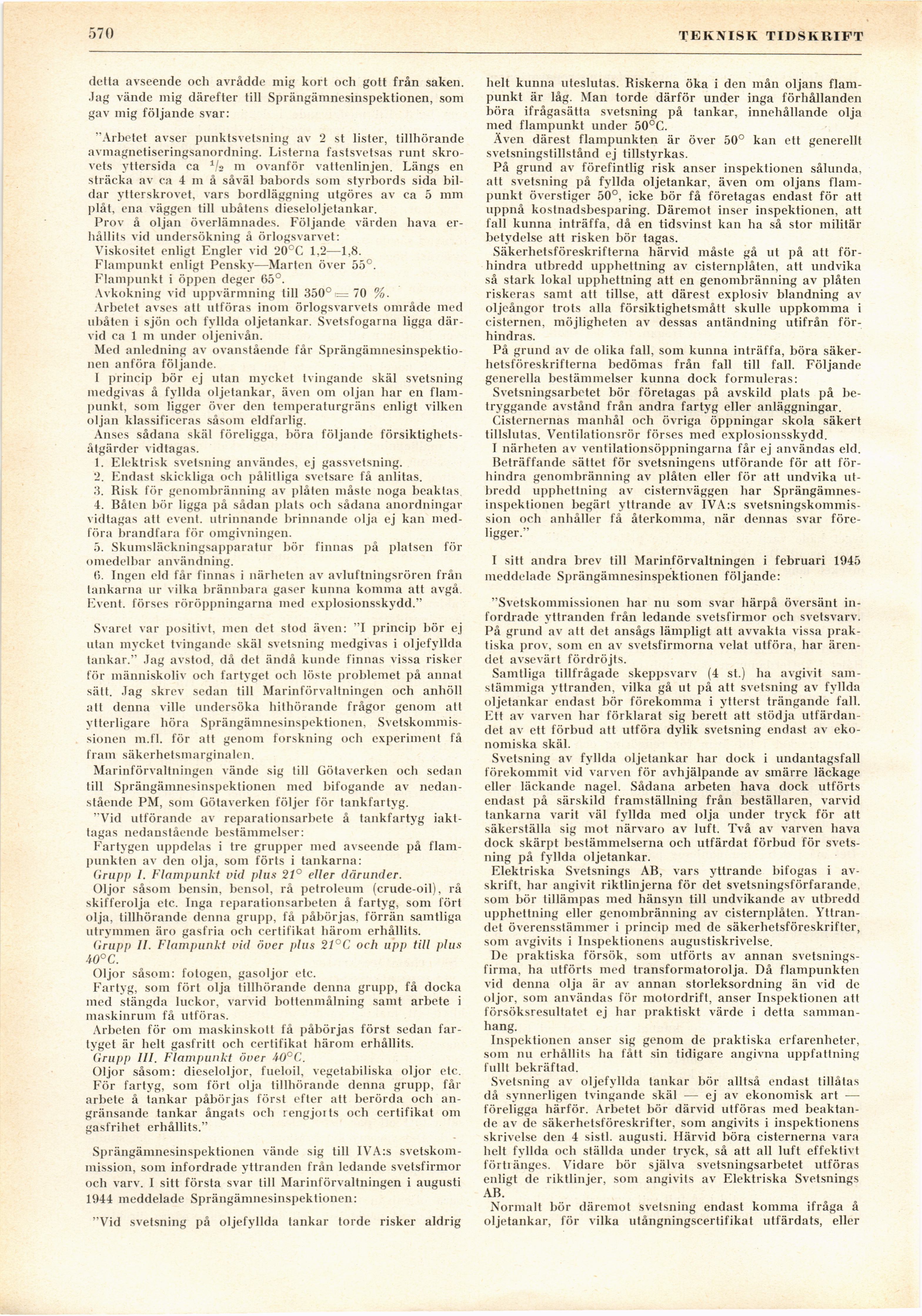 Full resolution (JPEG) - On this page / på denna sida - H. 20. 19 maj 1945 - Säkerhetsföreskrifter vid reparationssvetsning av oljetankar, av Abraham Grünberg