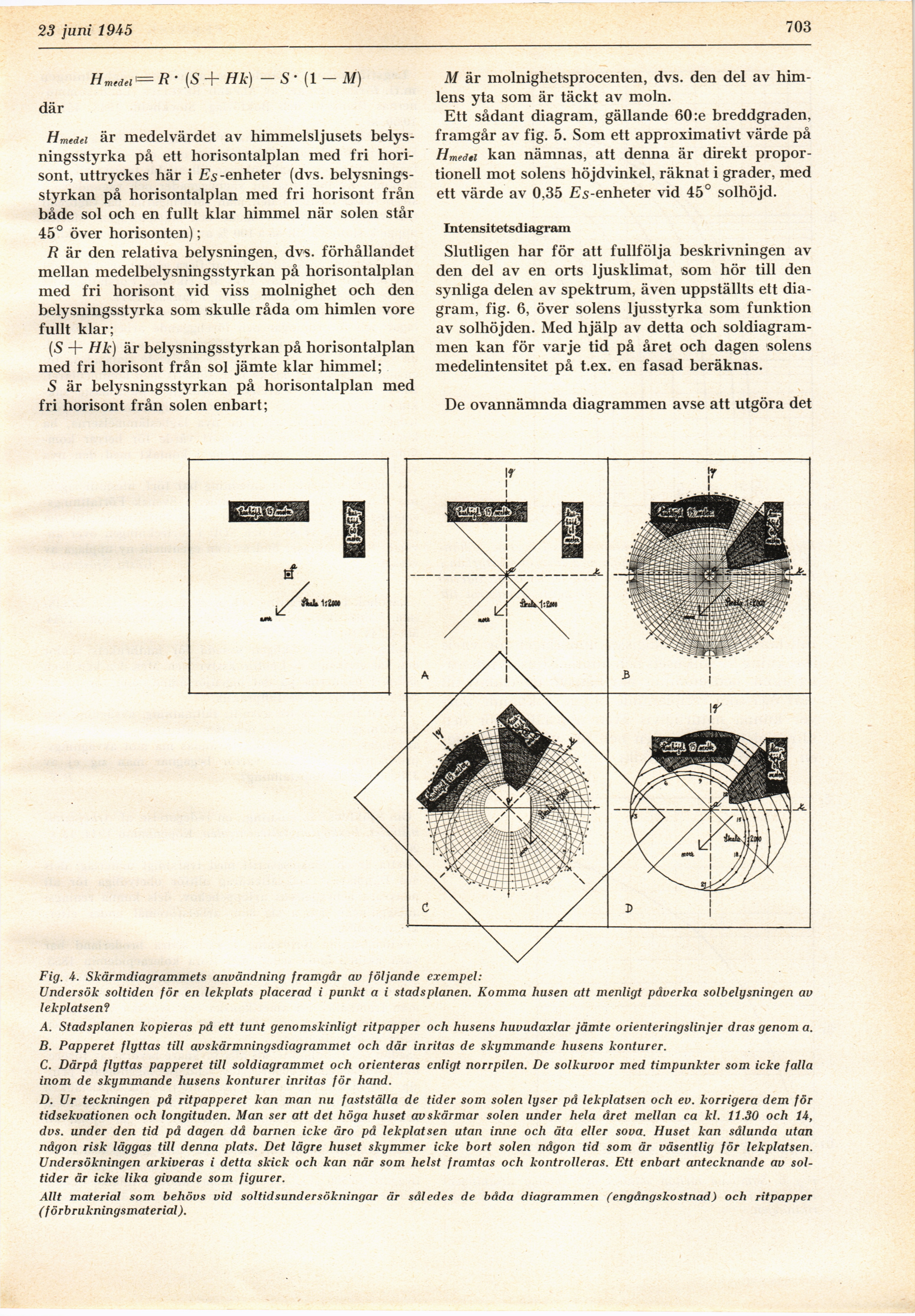 Full resolution (JPEG) - On this page / på denna sida - H. 25. 23 juni 1945 - Diagram för dagsljusberäkningar i Sverige, av Gunnar Pleijel
