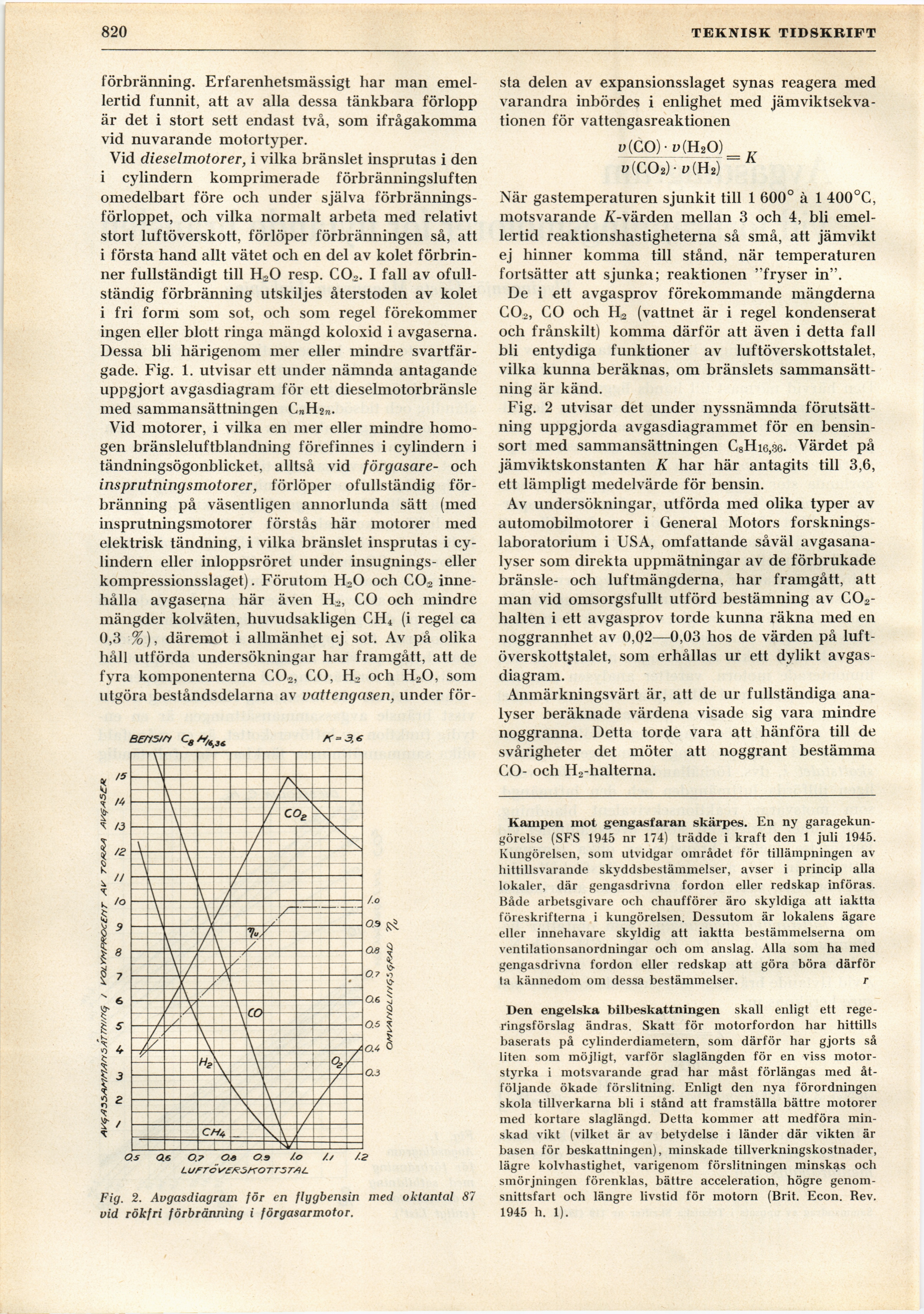 Full resolution (JPEG) - On this page / på denna sida - H. 29. 21 juli 1945 - Avgasdiagram vid förbränningsmotorer för flytande bränslen, av Gösta Magnusson - Kampen mot gengasfaran skärpes, av r - Den engelska bilbeskattningen