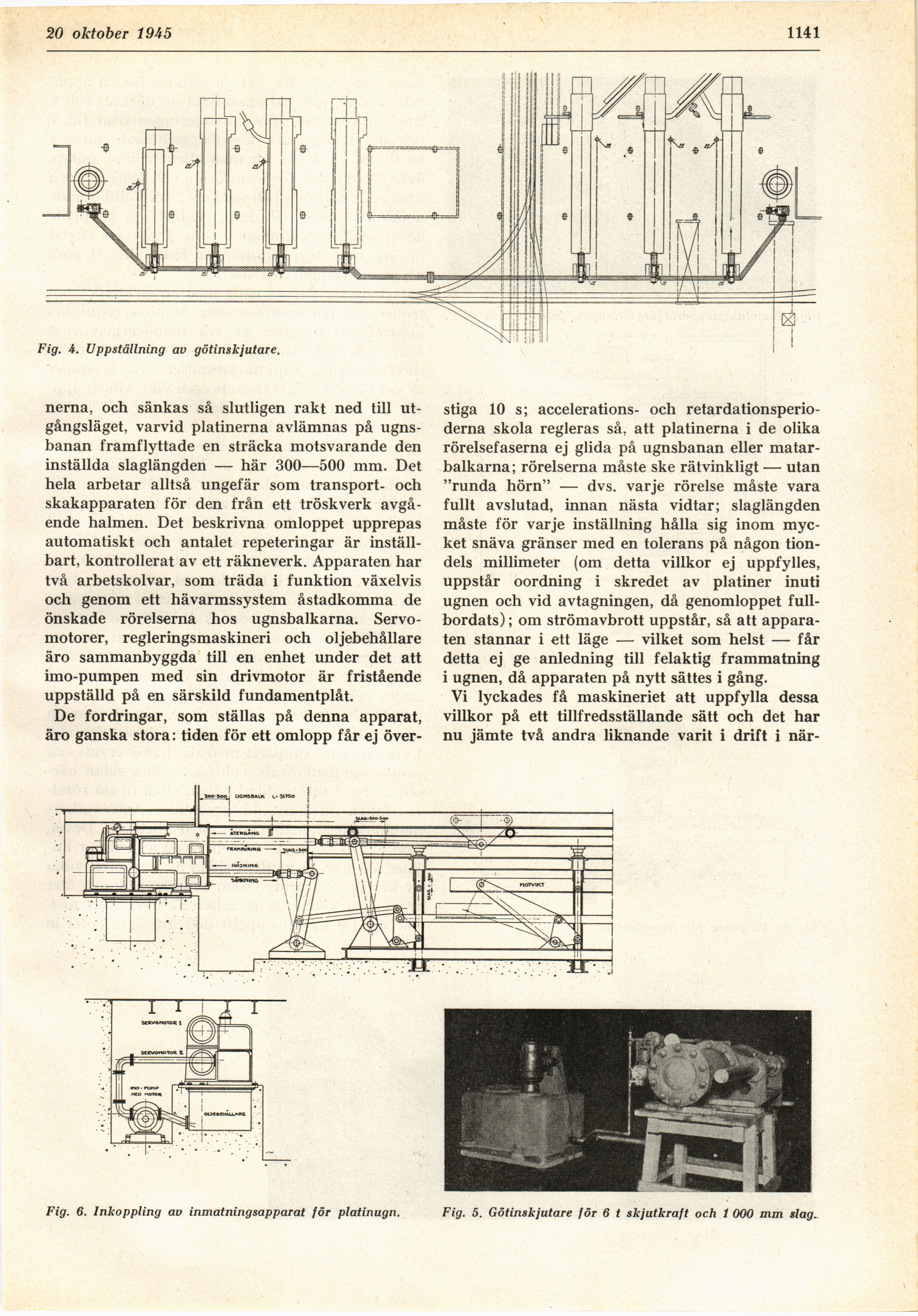 Fig. 6. Inkoppling av inmatningsapparat för platinugn. Fig. 5. Götinskjutare för 6 t skjutkraft och 1 000 mm slag.