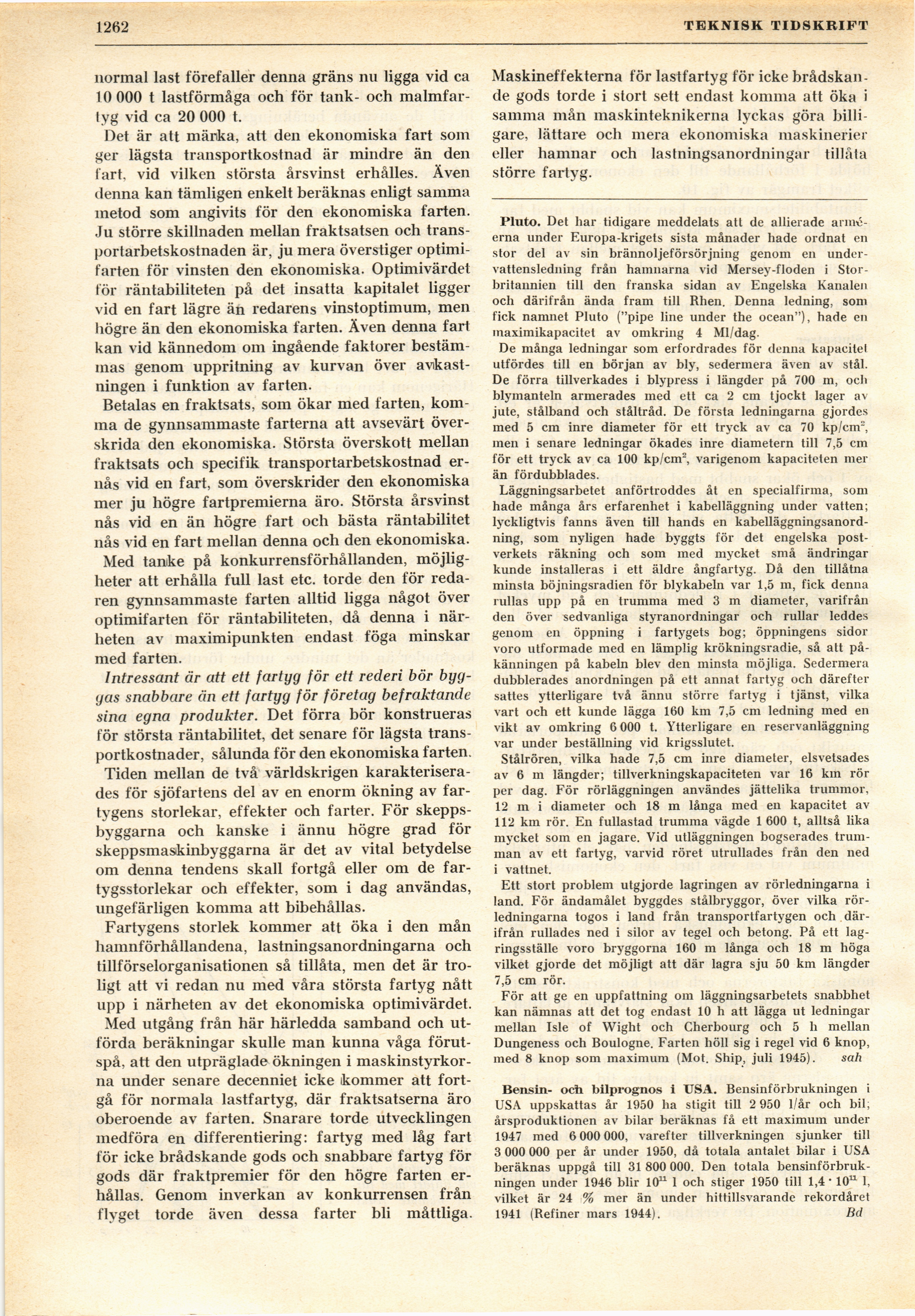 Full resolution (JPEG) - On this page / på denna sida - H. 46. 17 november 1945 - Hastighetens inverkan på kostnaderna för varutransport med fartyg, av Ingvar Jung - Pluto, av sah - Bensin- och bilprognos i USA, av Bd