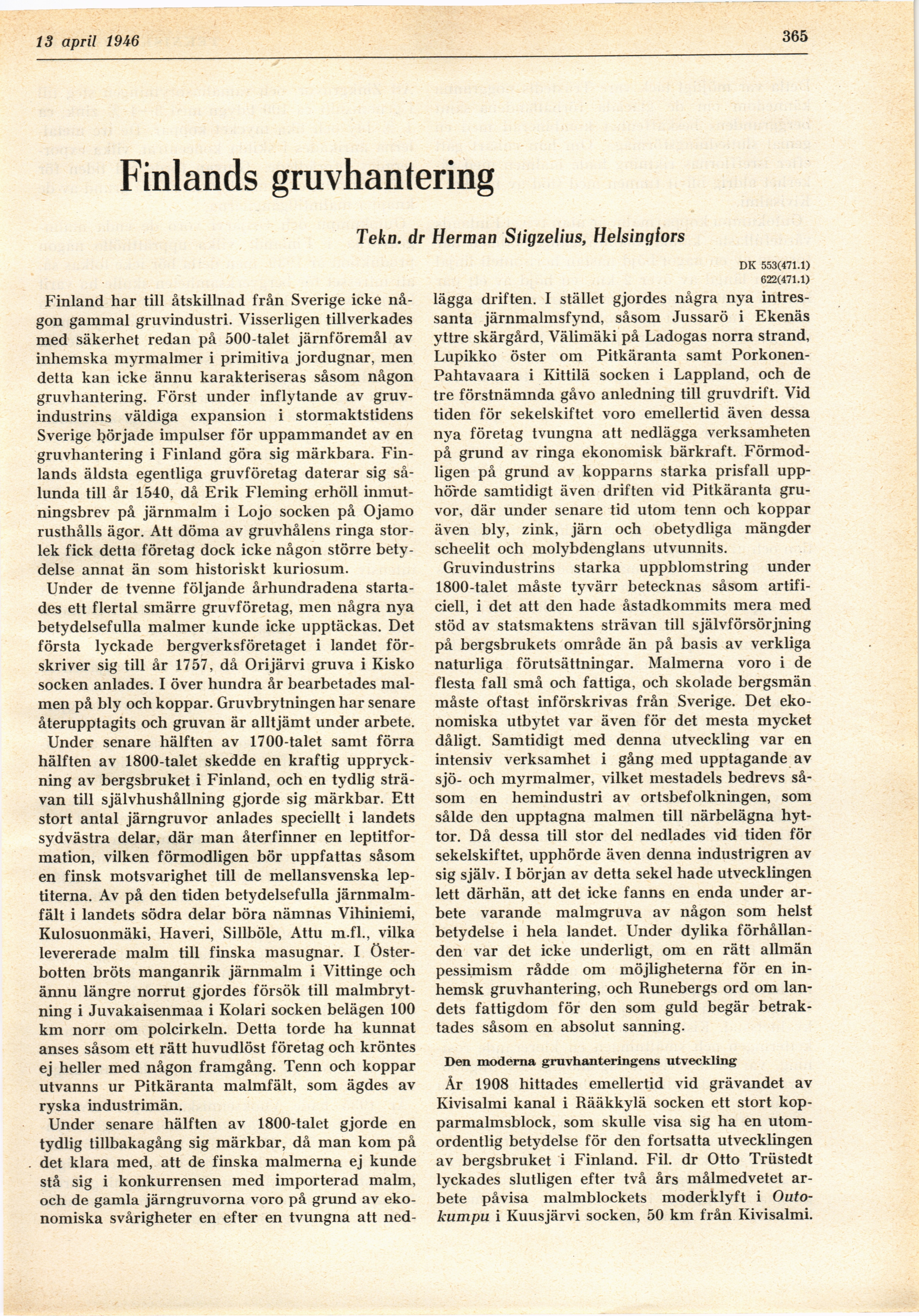 Full resolution (JPEG) - On this page / på denna sida - H. 15. 13 april 1946 - Finlands gruvhantering, av Hreman Stigzelius
