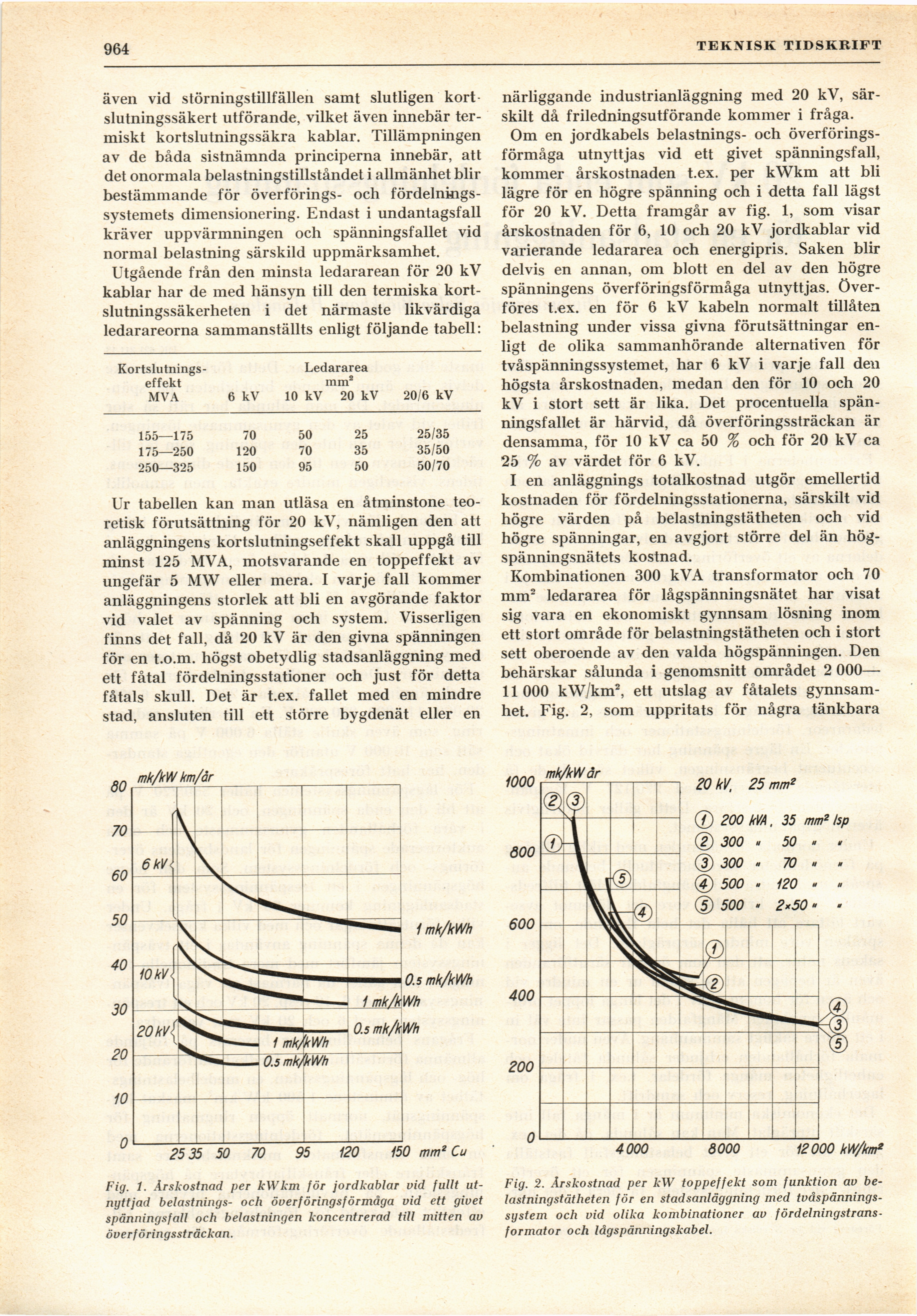 Fig. 1. Årskostnad per kW km för jordkablar vid fullt