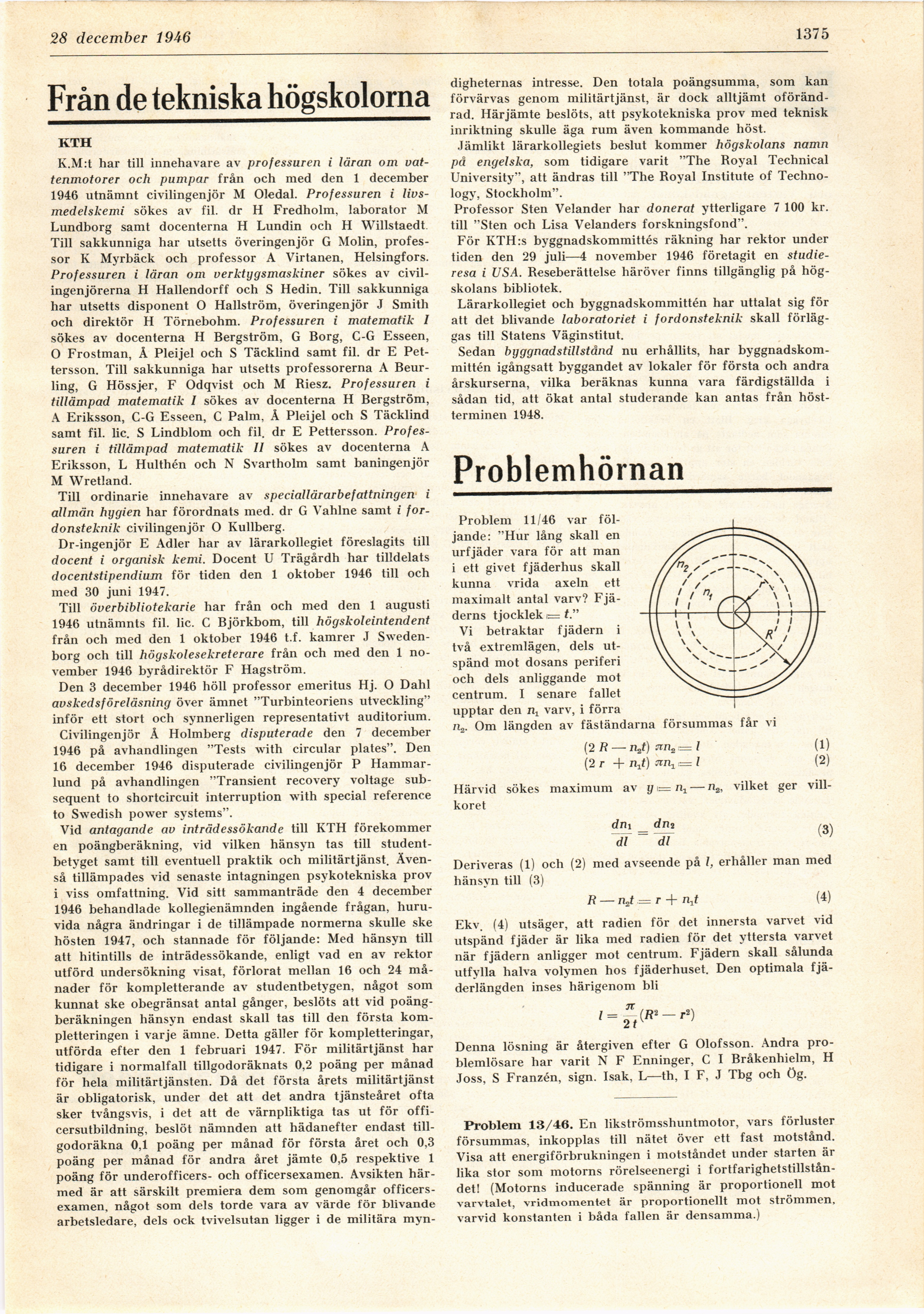 Full resolution (JPEG) - On this page / på denna sida - H. 52. 28 december 1946 - Från de tekniska högskolorna - Problemhörnan
