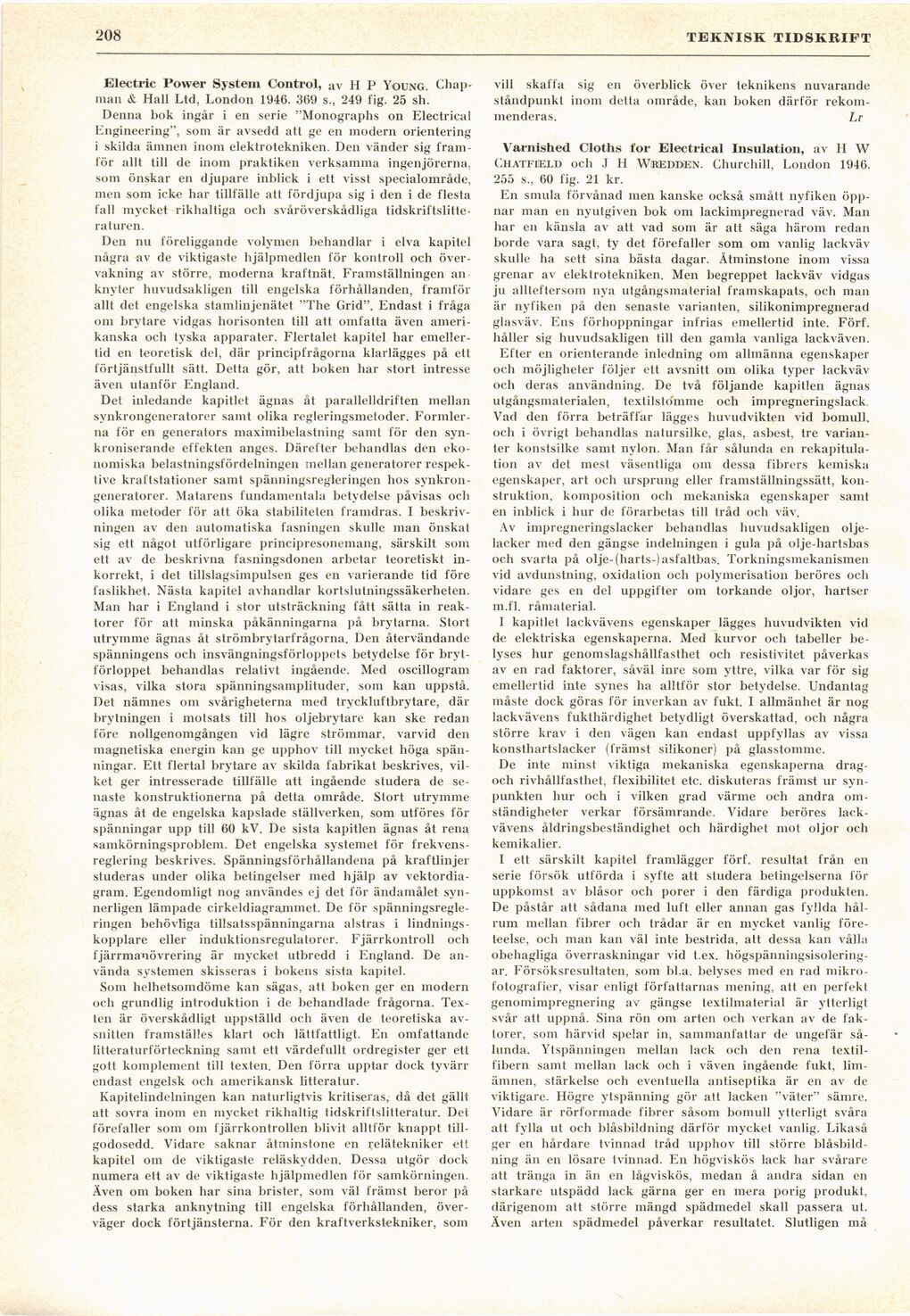 Full resolution (JPEG) - On this page / på denna sida - H. 9. 1 mars 1947 - Electric Power System Control, av Lr - Varnished Cloths for Electrical Insulation, av E Björkman