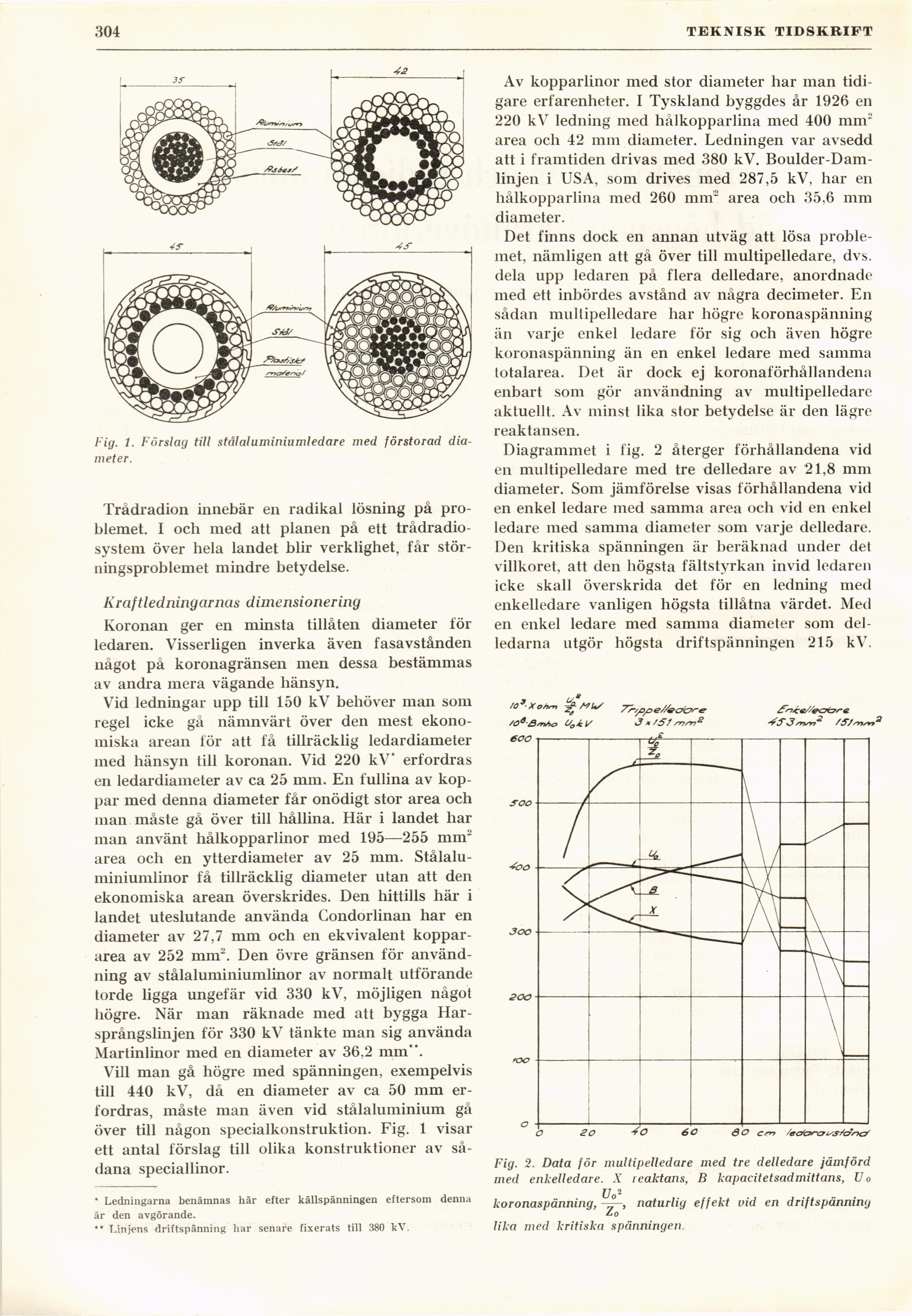 med hänsyn till koronan. Vid 220 kV* erfordras