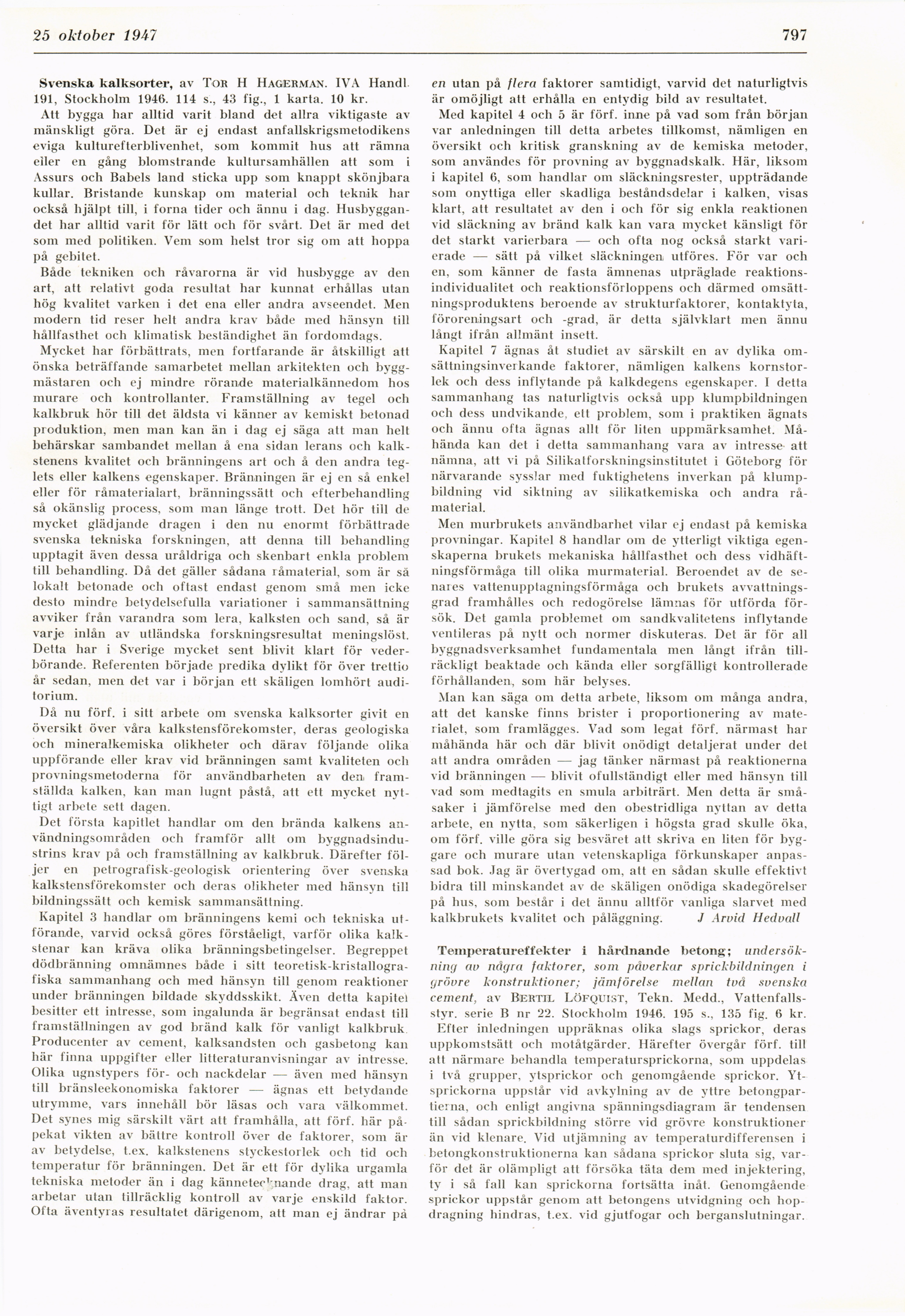 Full resolution (JPEG) - On this page / på denna sida - H. 39. 25 oktober 1947 - Svenska kalksorter, av J Arvid Hedvall - Temperatureffekter i hårdnande betong, av K E Källerö