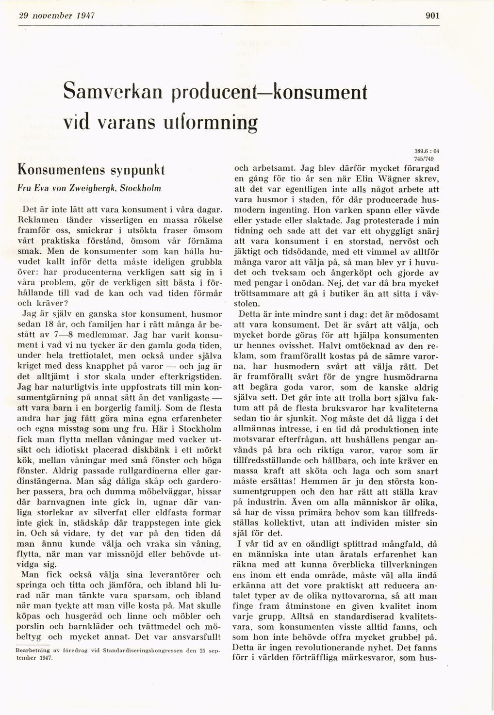Full resolution (JPEG) - On this page / på denna sida - H. 44. 29 november 1947 - Samverkan producent—konsument vid varans utformning. Konsumentens synpunkt, av Eva von Zweigbergk