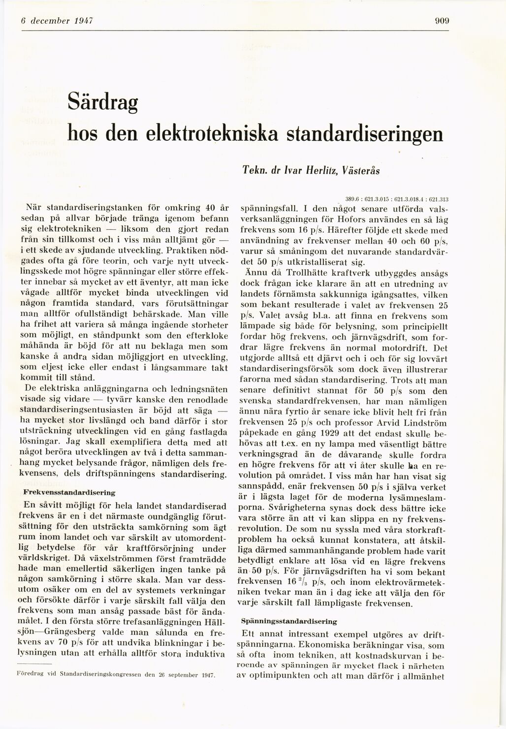 Föredrag vid Standardiseringskongressen den 26 september 1947.