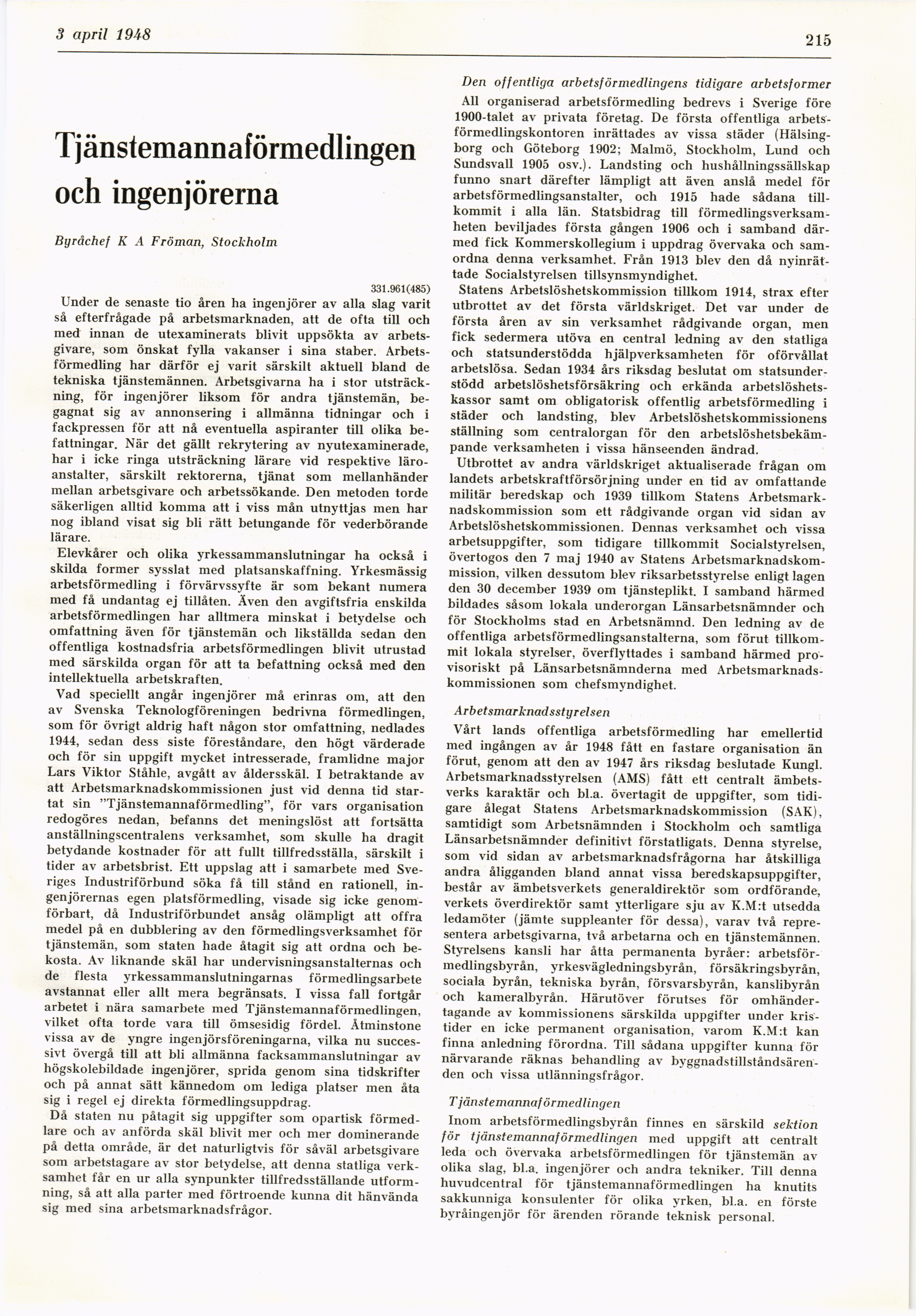 Full resolution (JPEG) - On this page / på denna sida - H. 14. 3 april 1948 - Tjänstemannaförmedlingen och ingenjörerna, av K A Fröman