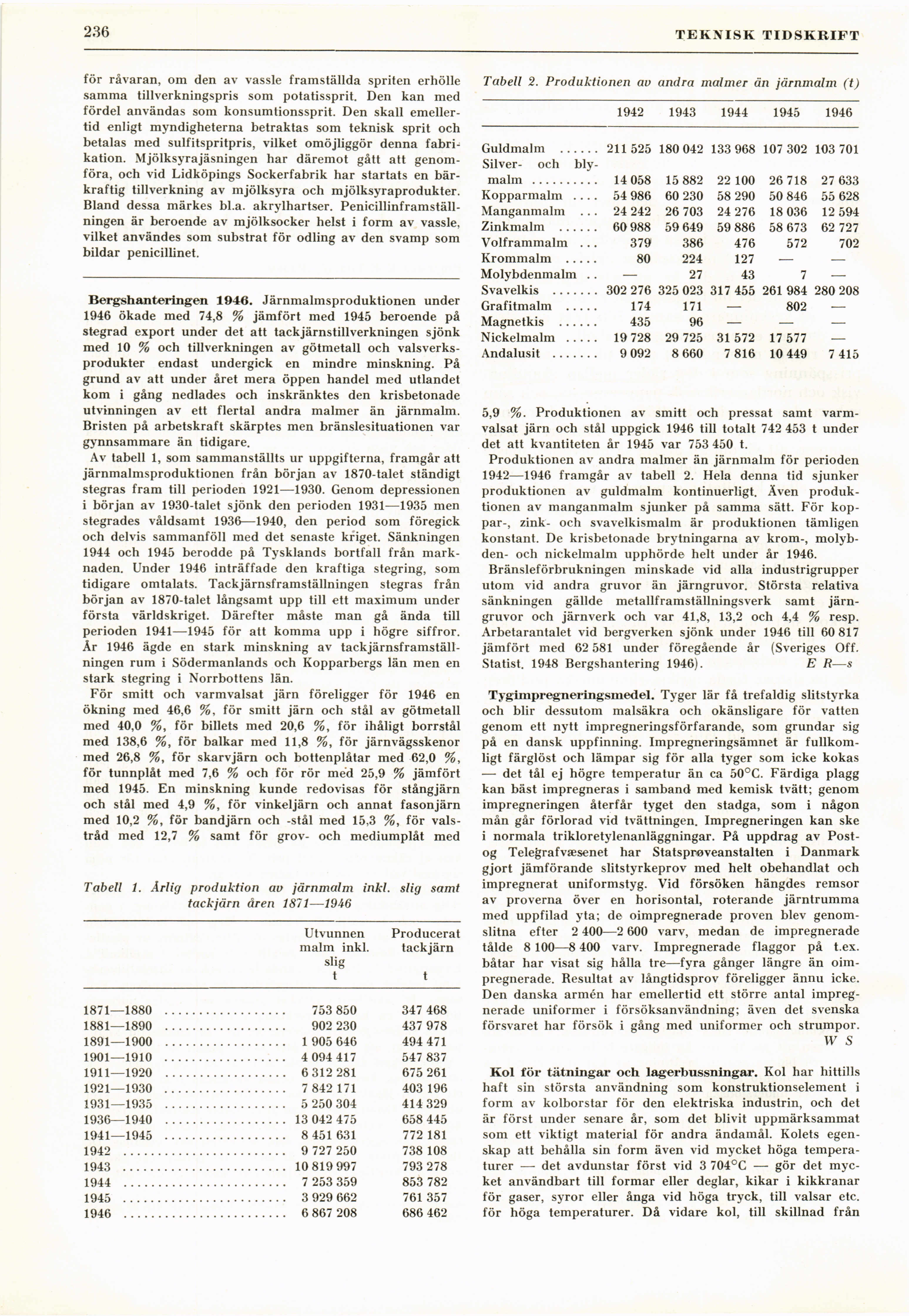 Full resolution (JPEG) - On this page / på denna sida - H. 15. 10 april 1948 - Mejerihanteringens biprodukter som råvara för kemisk-teknisk fabrikation, av K E Thomé - Bergshanteringen 1946, av E R—s - Tygimpregneringsmedel, av W S - Kol för tätningar och lagerbussningar, av B H Lagerstedt