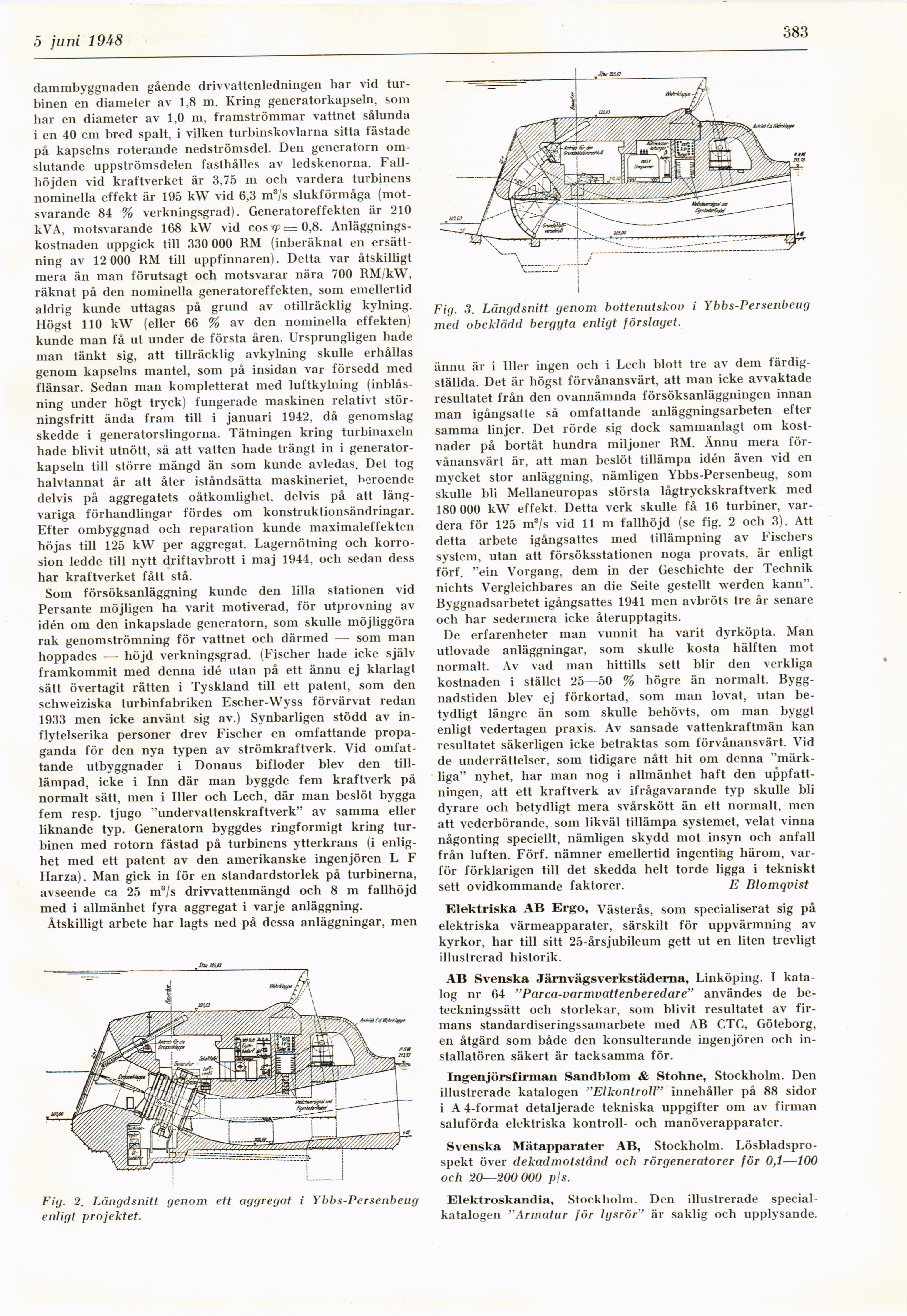 Full resolution (JPEG) - On this page / på denna sida - H. 23. 5 juni 1948 - Über das Unterwasserkraftwerk, av E Blomqvist - Elektriska AB Ergo - AB Svenska Järnvägsverkstäderna - Ingenjörsfirman Sandblom & Stohne - Svenska Mätapparater AB - Elektroskandia