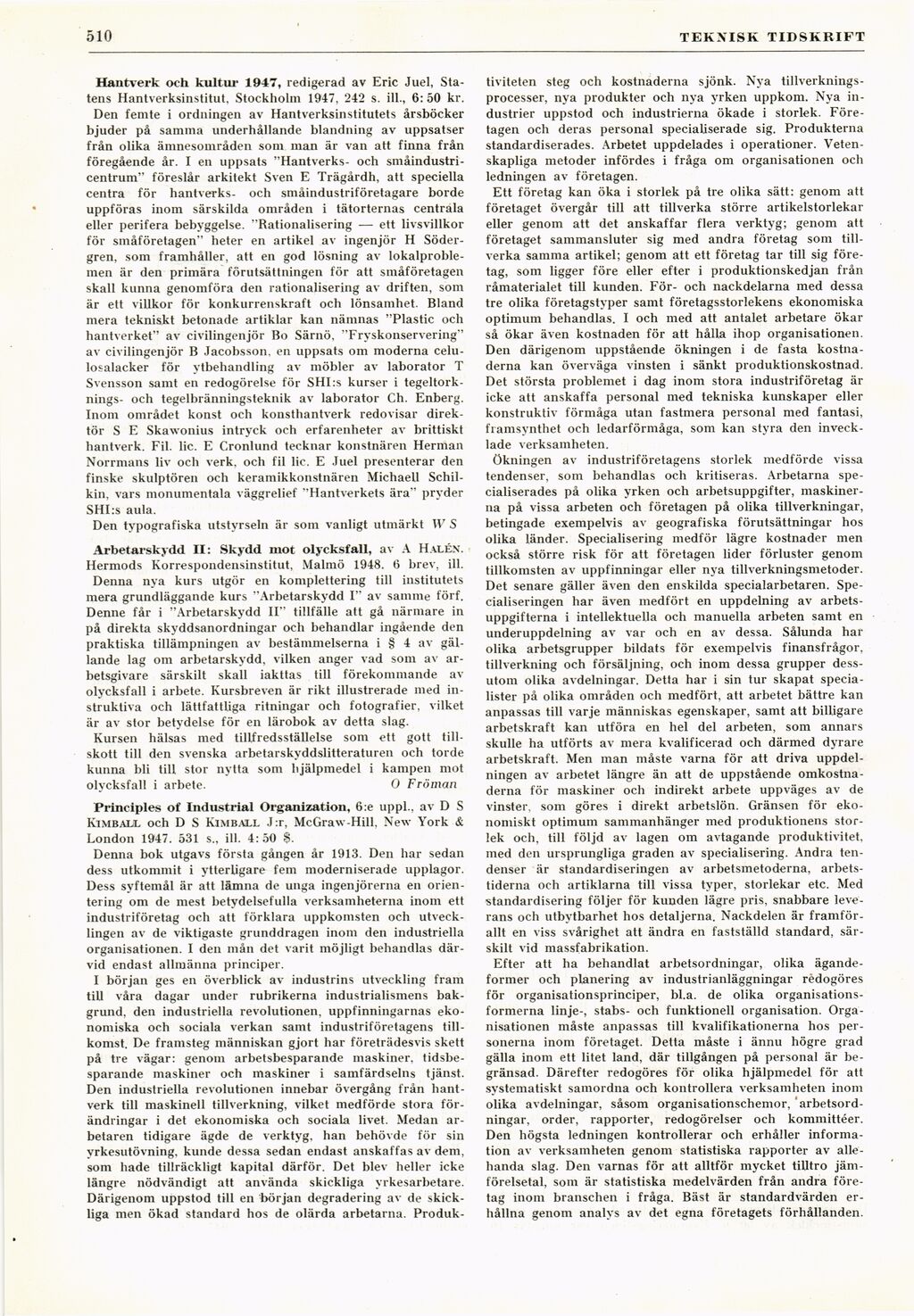 Full resolution (JPEG) - On this page / på denna sida - H. 29. 14 augusti 1948 - Hantverk och kultur 1947, av W S - Arbetarskydd II: Skydd mot olycksfall, av O Fröman - Principles of Industrial Organization, av R L