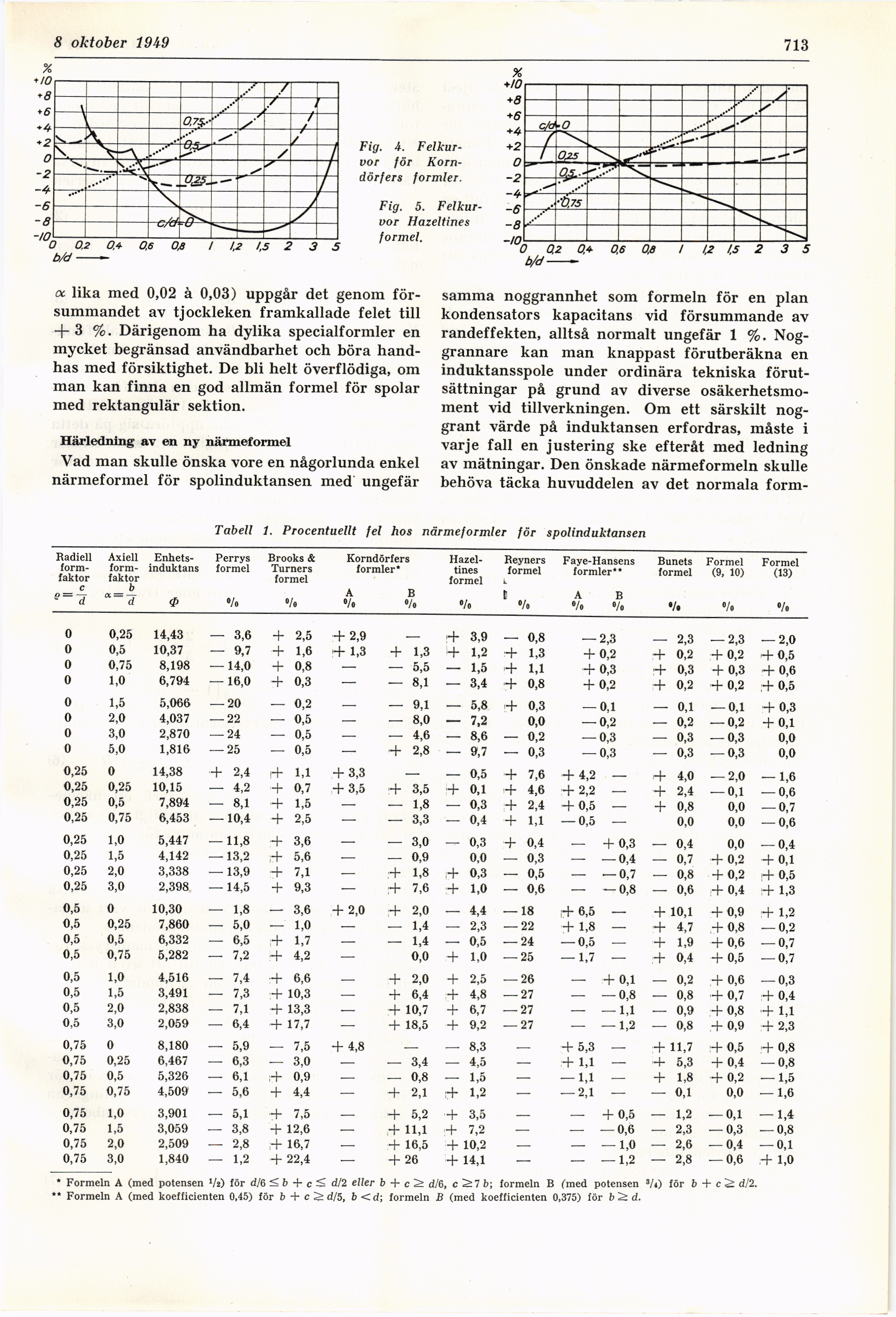 Tabell 1. Procentuellt fel hos närmeformler för spolinduktansen