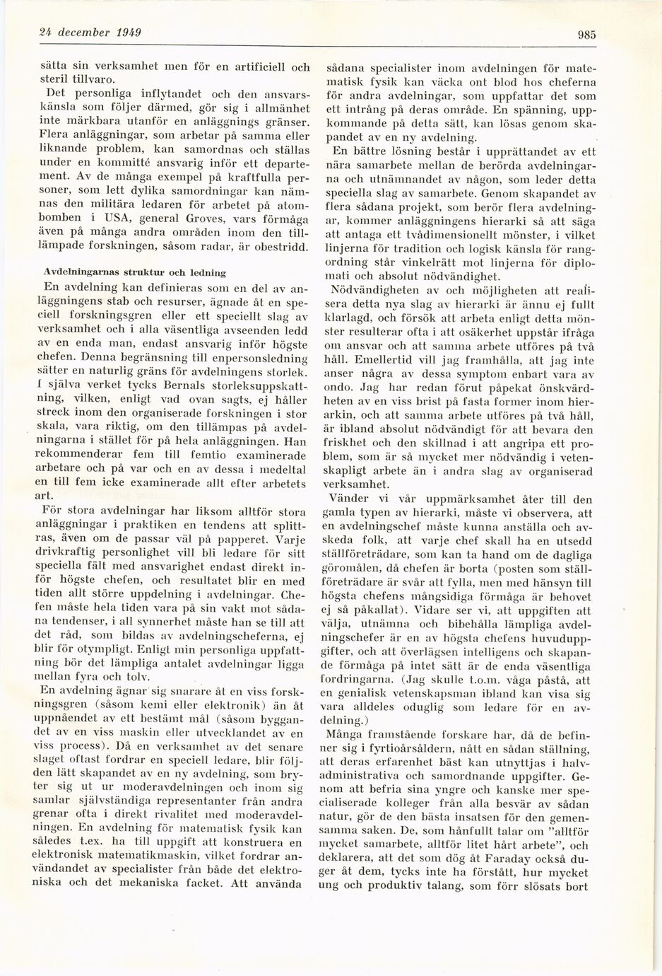 Full resolution (JPEG) - On this page / på denna sida - H. 47. 24 december 1949 - Storforskningens struktur och psykologi, av Lew Kowarski