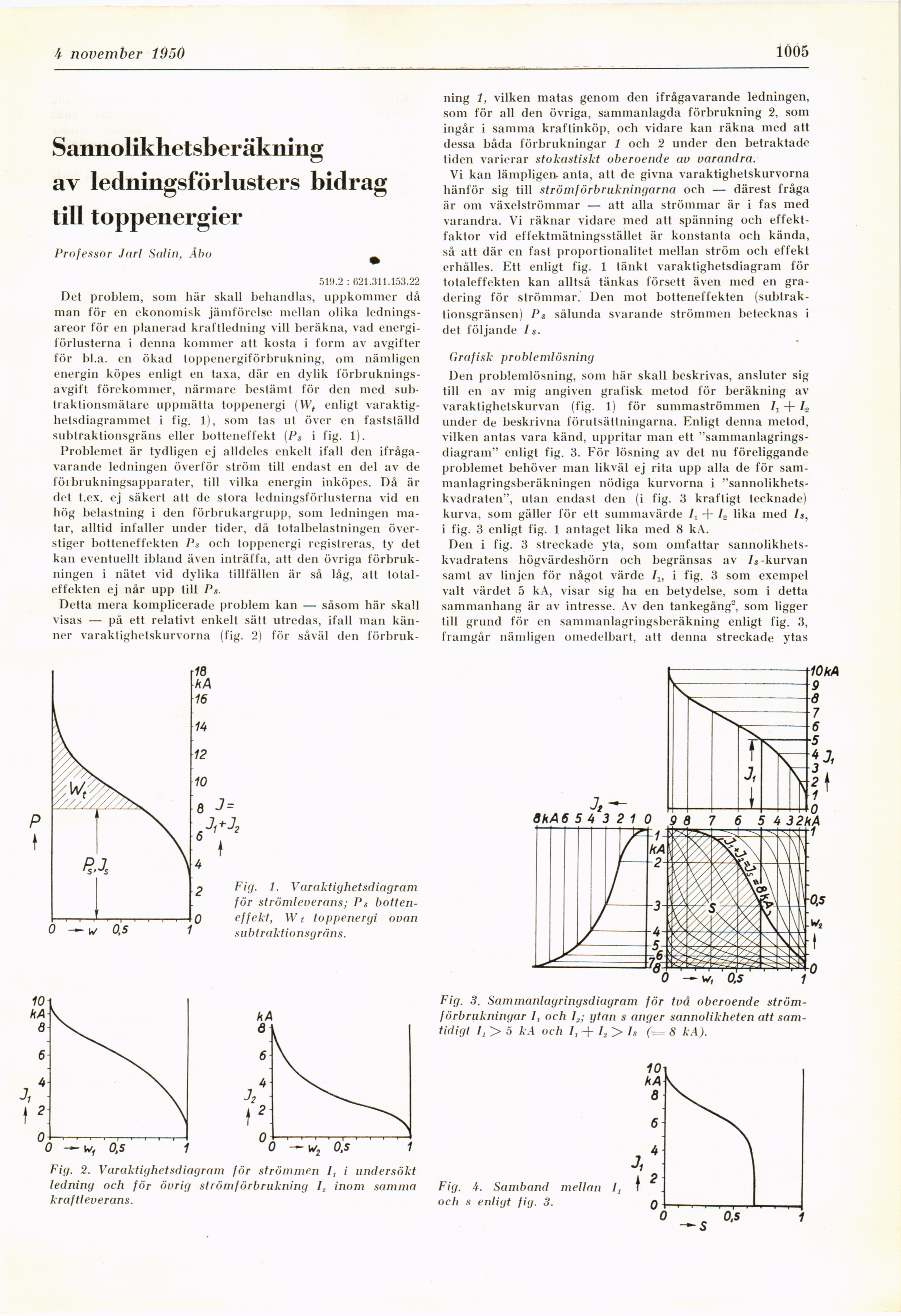 Full resolution (JPEG) - On this page / på denna sida - H. 40. 4 november 1950 - Sannolikhetsberäkning av ledningsförlusters bidrag till toppenergier, av Jarl Salin