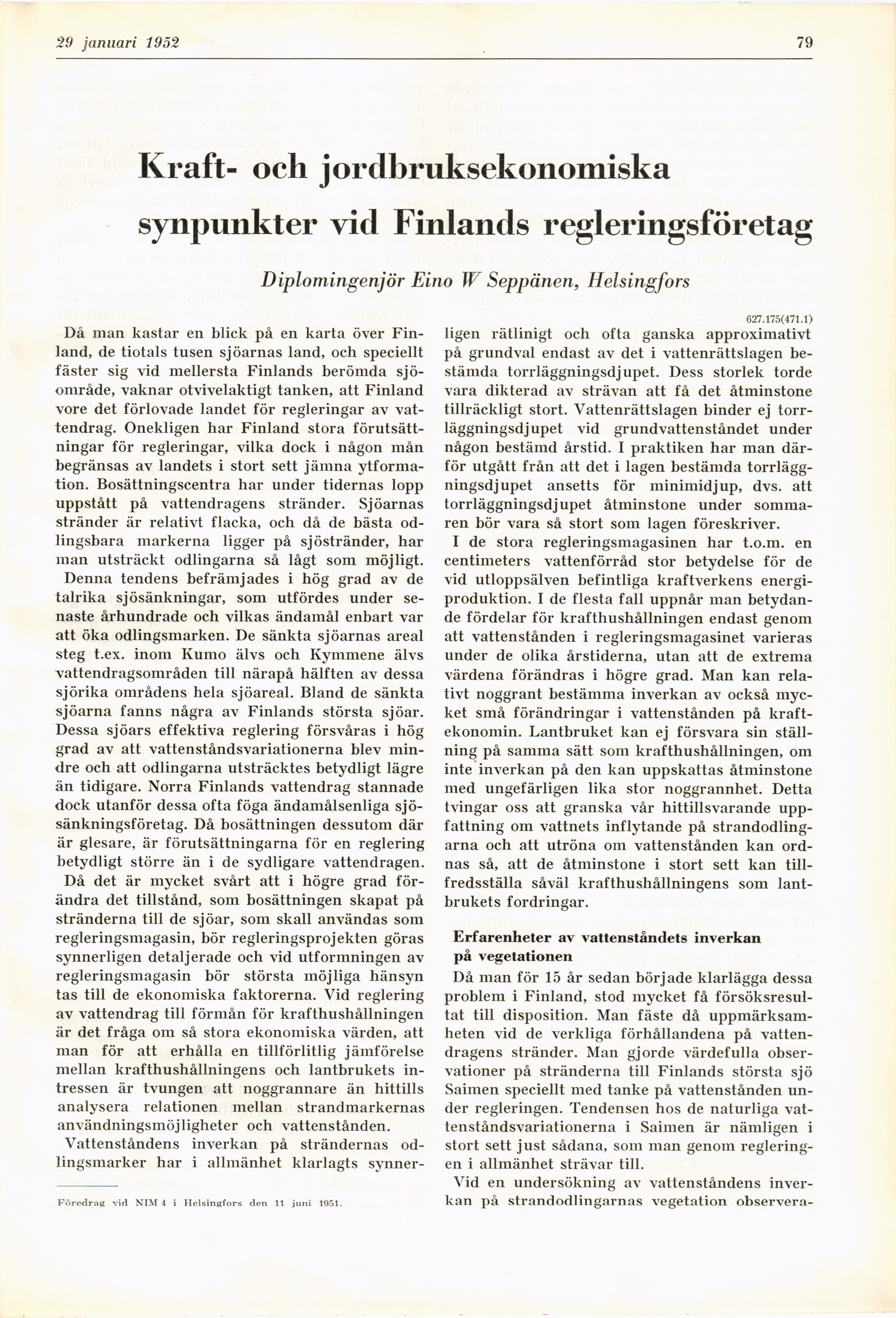 Full resolution (JPEG) - On this page / på denna sida - H. 4. 29 januari 1952 - Kraft- och jordbruksekonomiska synpunkter vid Finlands regleringsföretag, av Eino W Seppänen