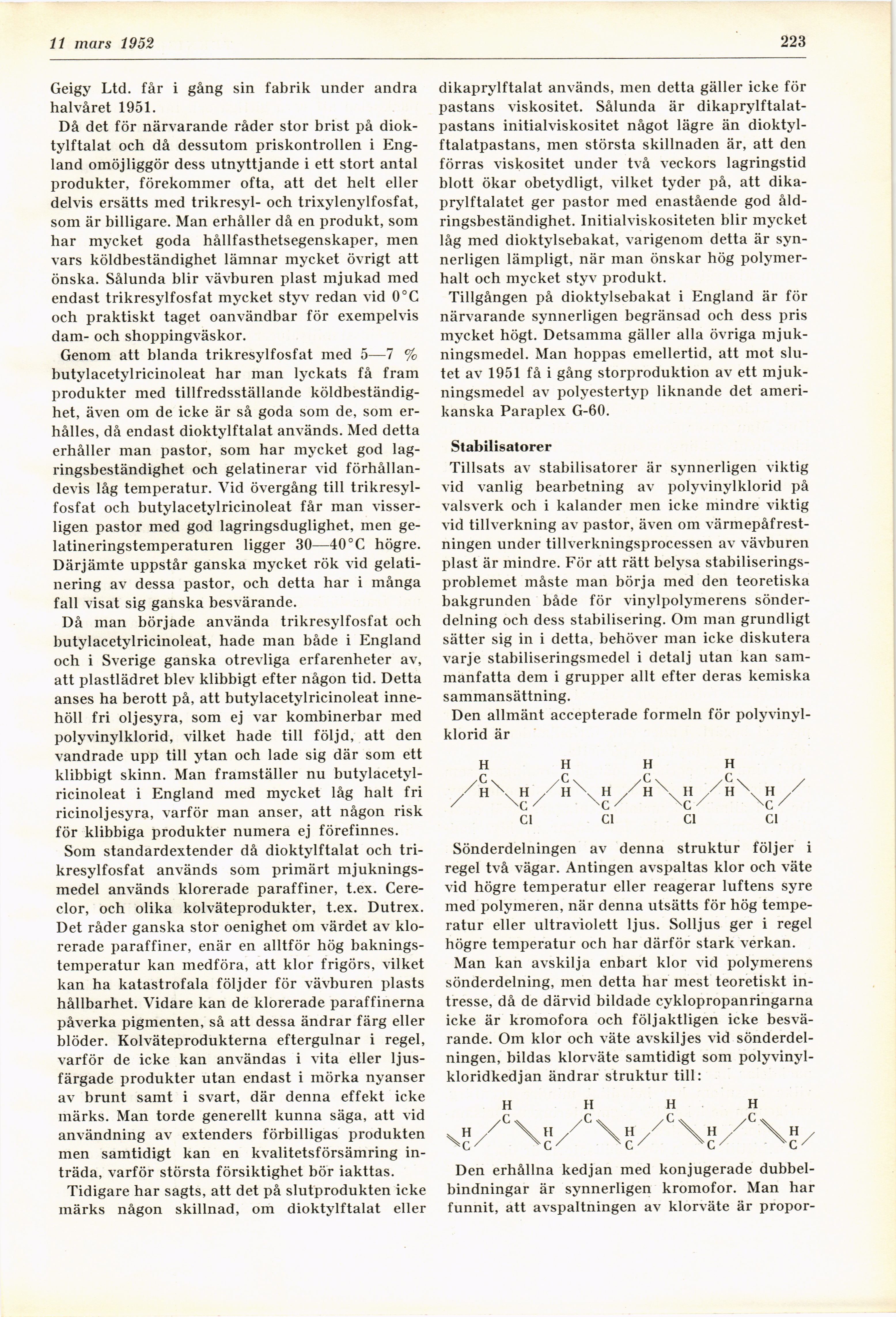 Full resolution (JPEG) - On this page / på denna sida - H. 10. 11 mars 1952 - Polyvinylkloridpastor, av Harald Olsson