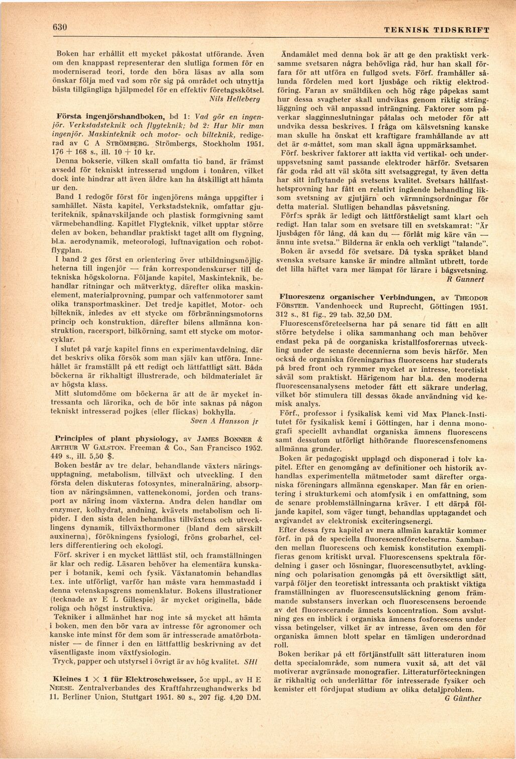 Full resolution (JPEG) - On this page / på denna sida - H. 27. 5 augusti 1952 - Böcker - Industriföretagens ekonomi, av Nils Helleberg - Första ingenjörshandboken, bd 1 & 2, av Sven A Hansson jr - Principles of plant physiology, av SHl - Kleines 1 × 1 für Elektroschweisser, av R Gunnert - Fluoreszenz organischer Verbindungen, av G Günther