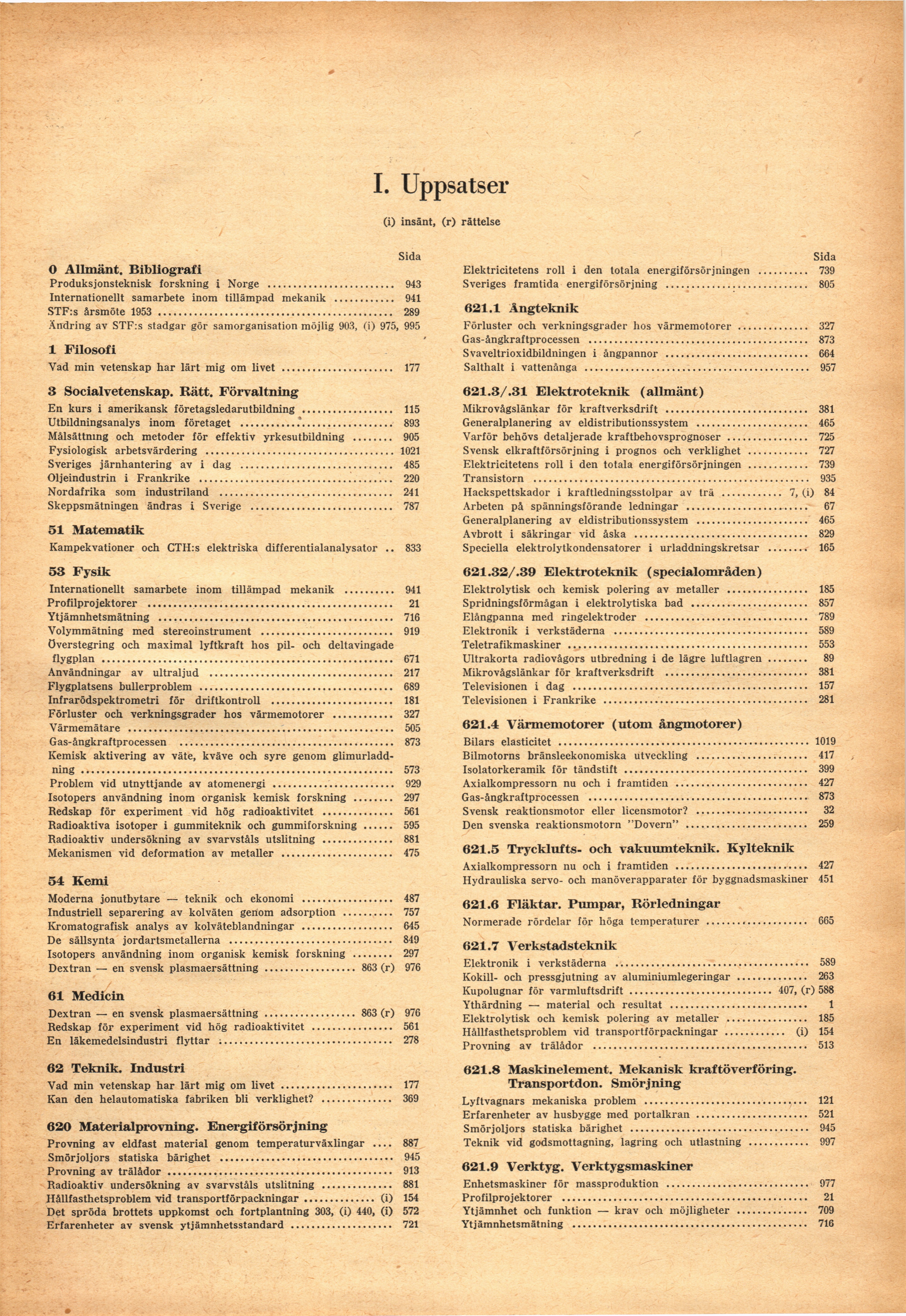 Problem vid utnyttjande av atomenergi ................................................929