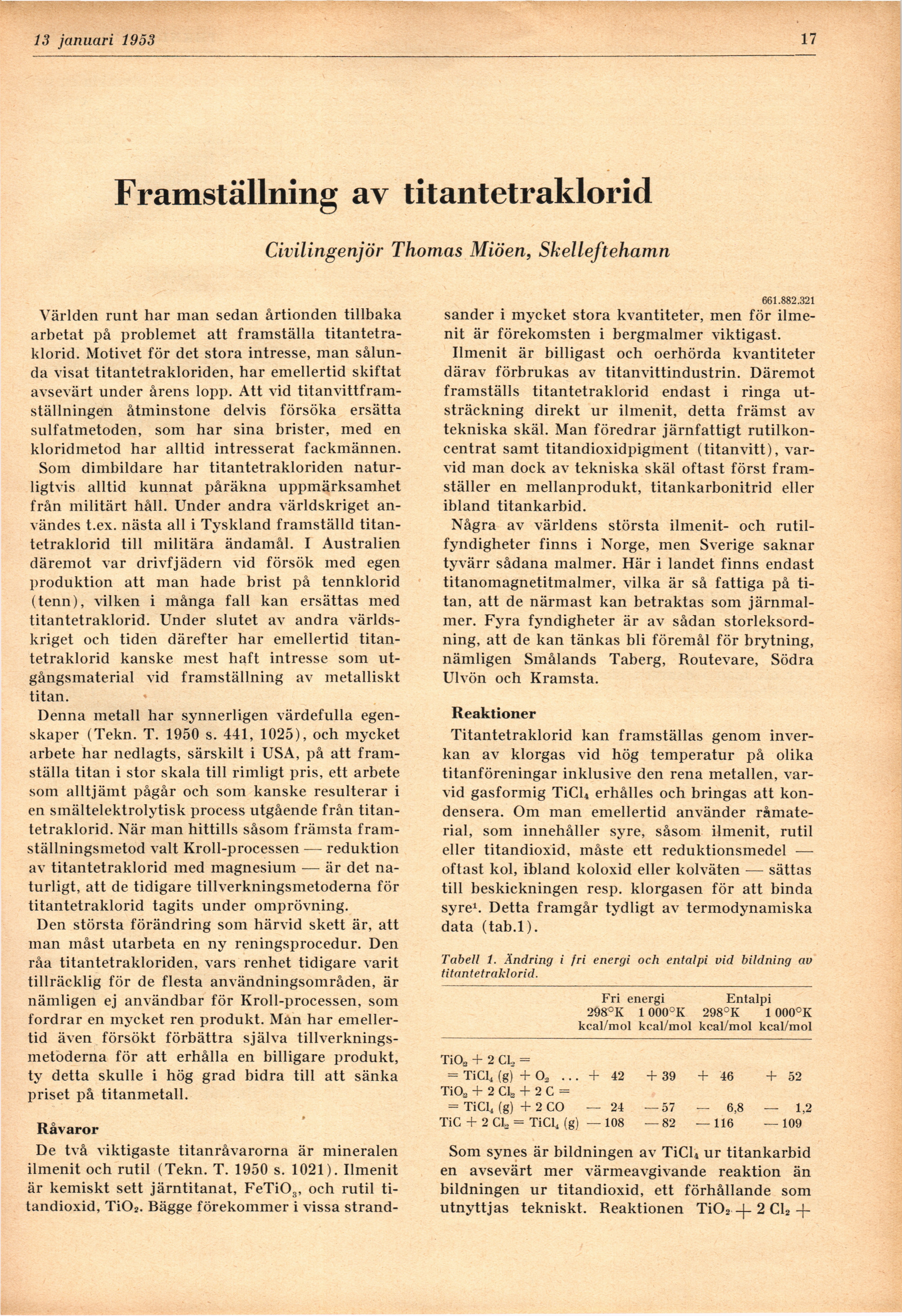 Full resolution (JPEG) - On this page / på denna sida - H. 2. 13 januari 1953 - Framställning av titantetraklorid, av Thomas Miöen