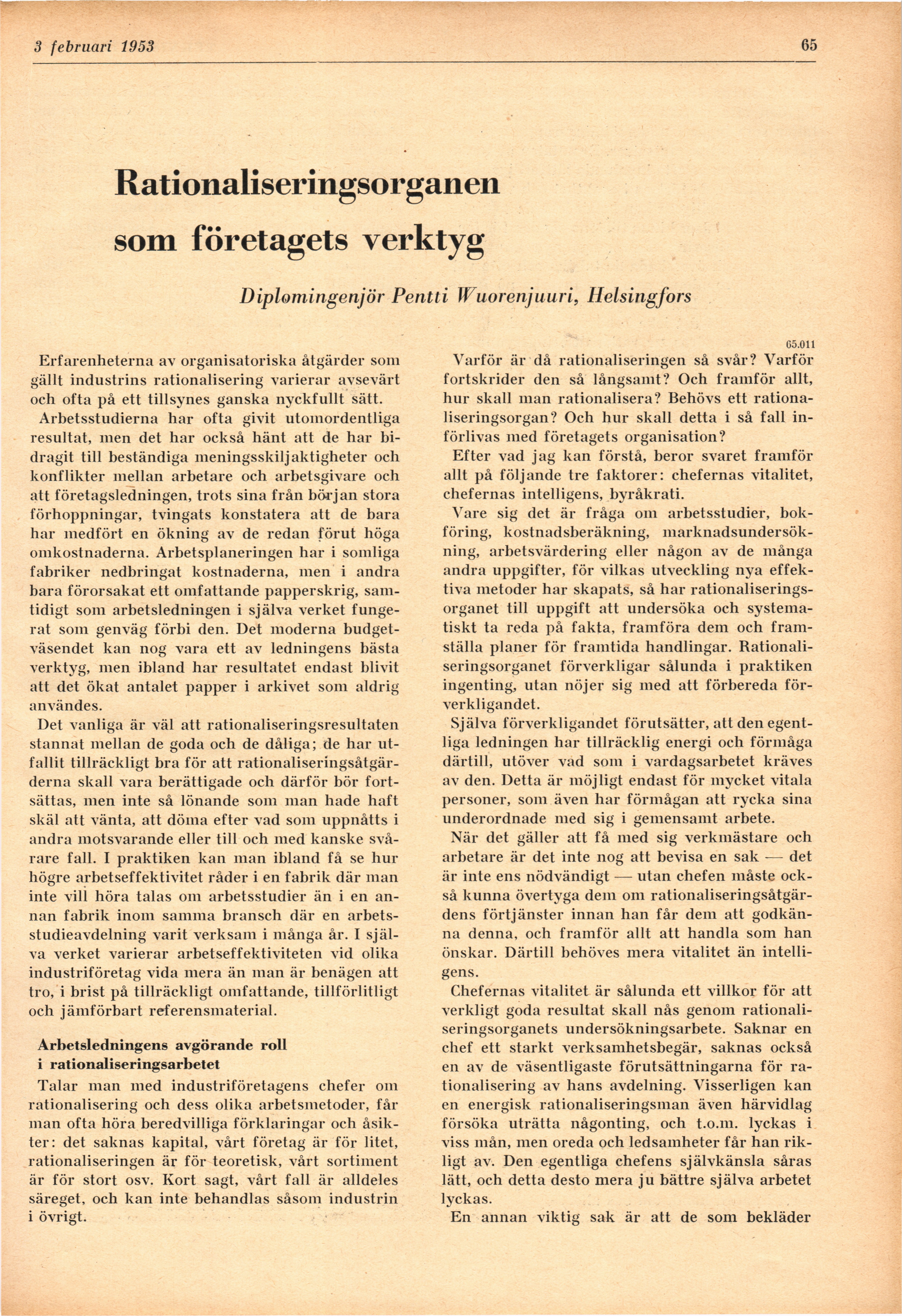 Full resolution (JPEG) - On this page / på denna sida - H. 5. 3 februari 1953 - Rationaliseringsorganen som företagets verktyg, av Pentti Wuorenjuuri