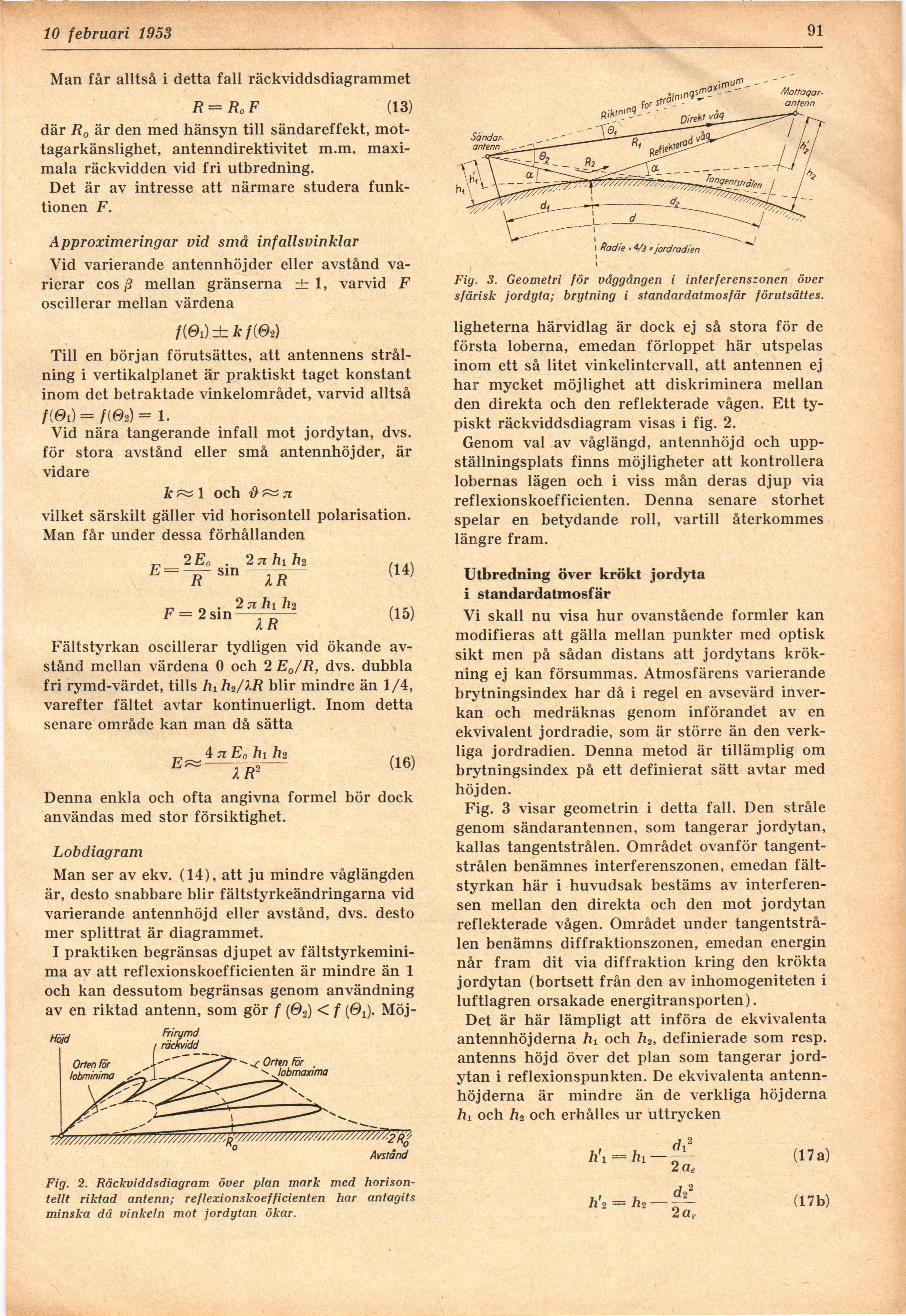Full resolution (JPEG) - On this page / på denna sida - H. 6. 10 februari 1953 - Ultrakorta radiovågors utbredning i de lägre luftlagren, av Bengt Josephson