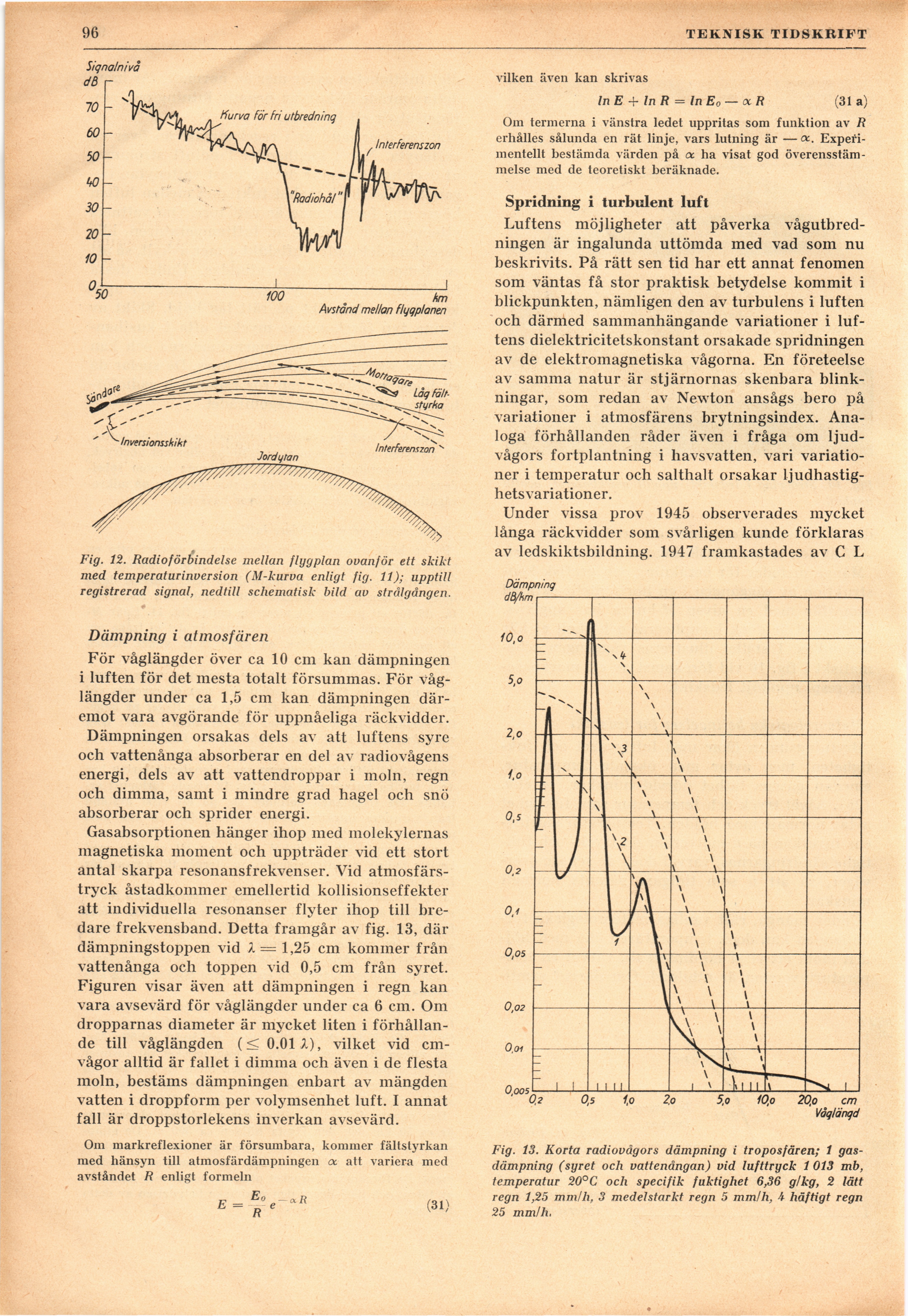 Fig. 13. Korta radiovågors dämpning i troposfären; 1