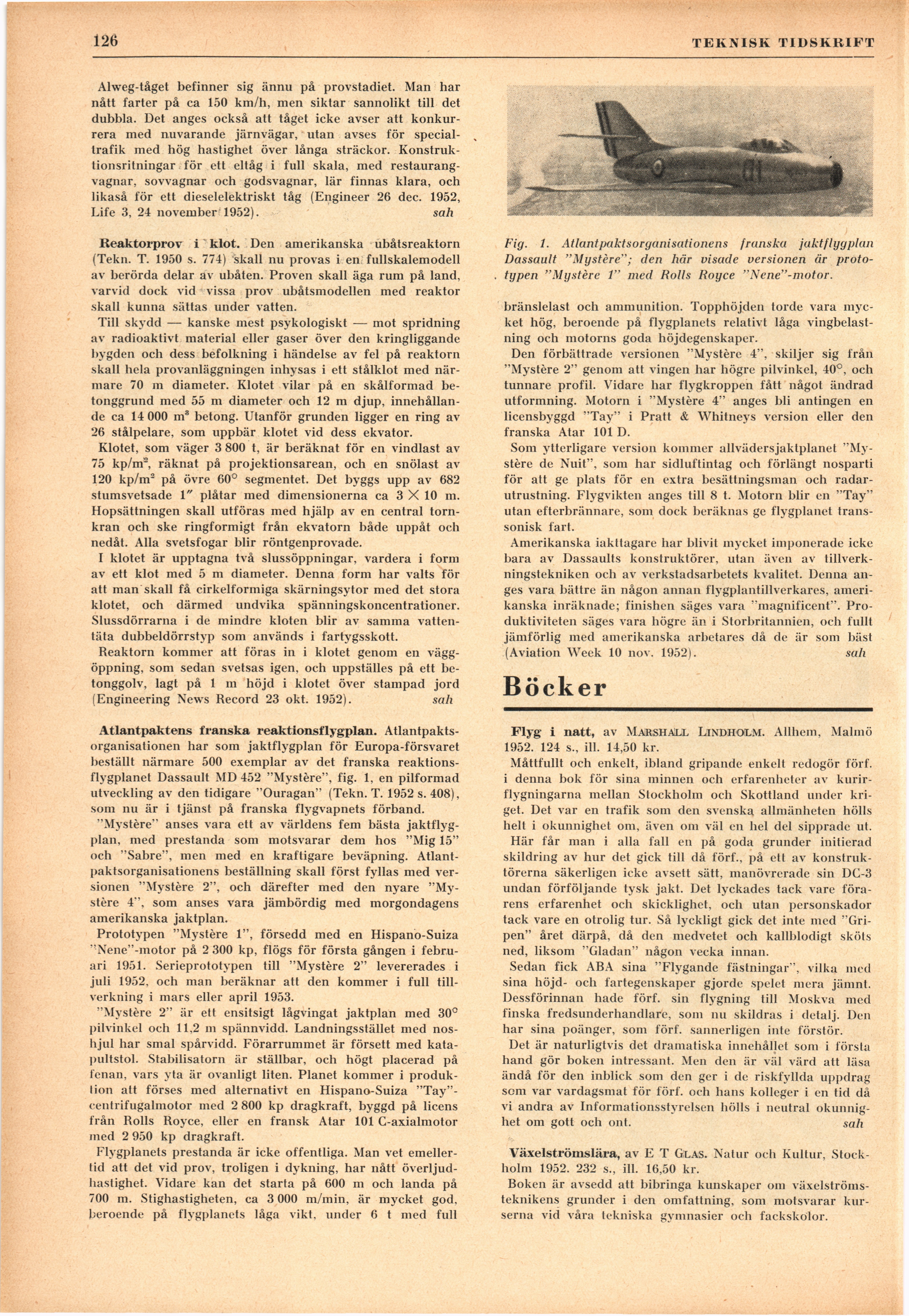 Full resolution (JPEG) - On this page / på denna sida - H. 7. 17 februari 1953 - Nybyggen - Alweg-enskenetåget, av sah - Reaktorprov i klot, av sah - Atlantpaktens franska reaktionsflygplan, av sah - Böcker - Flyg i natt, av sah - Växelströmslära, av Je