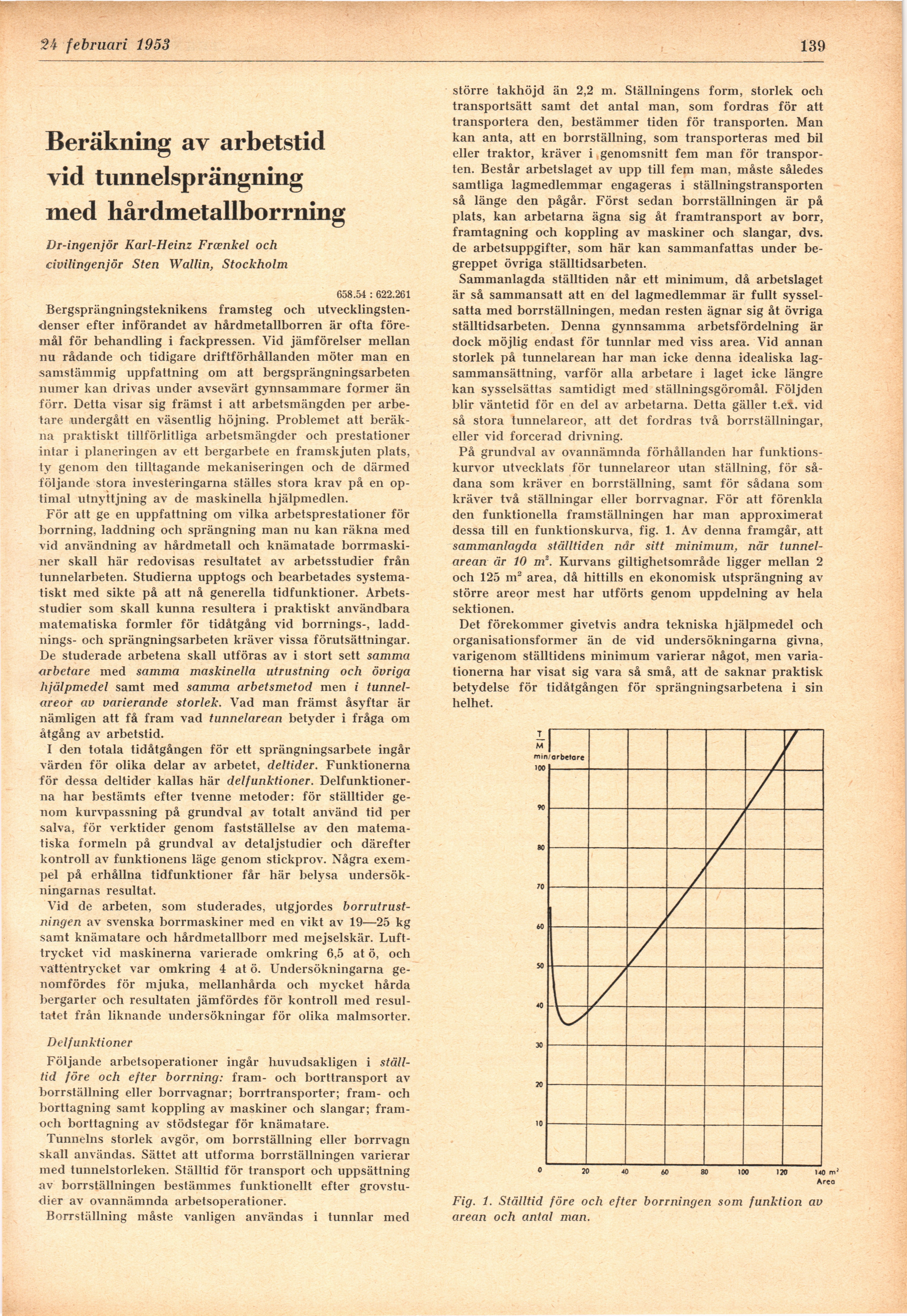 Full resolution (JPEG) - On this page / på denna sida - H. 8. 24 februari 1953 - Beräkning av arbetstid vid tunnelsprängning med hårdmetallborrning, av Karl-Heinz Frænkel och Sten Wallin