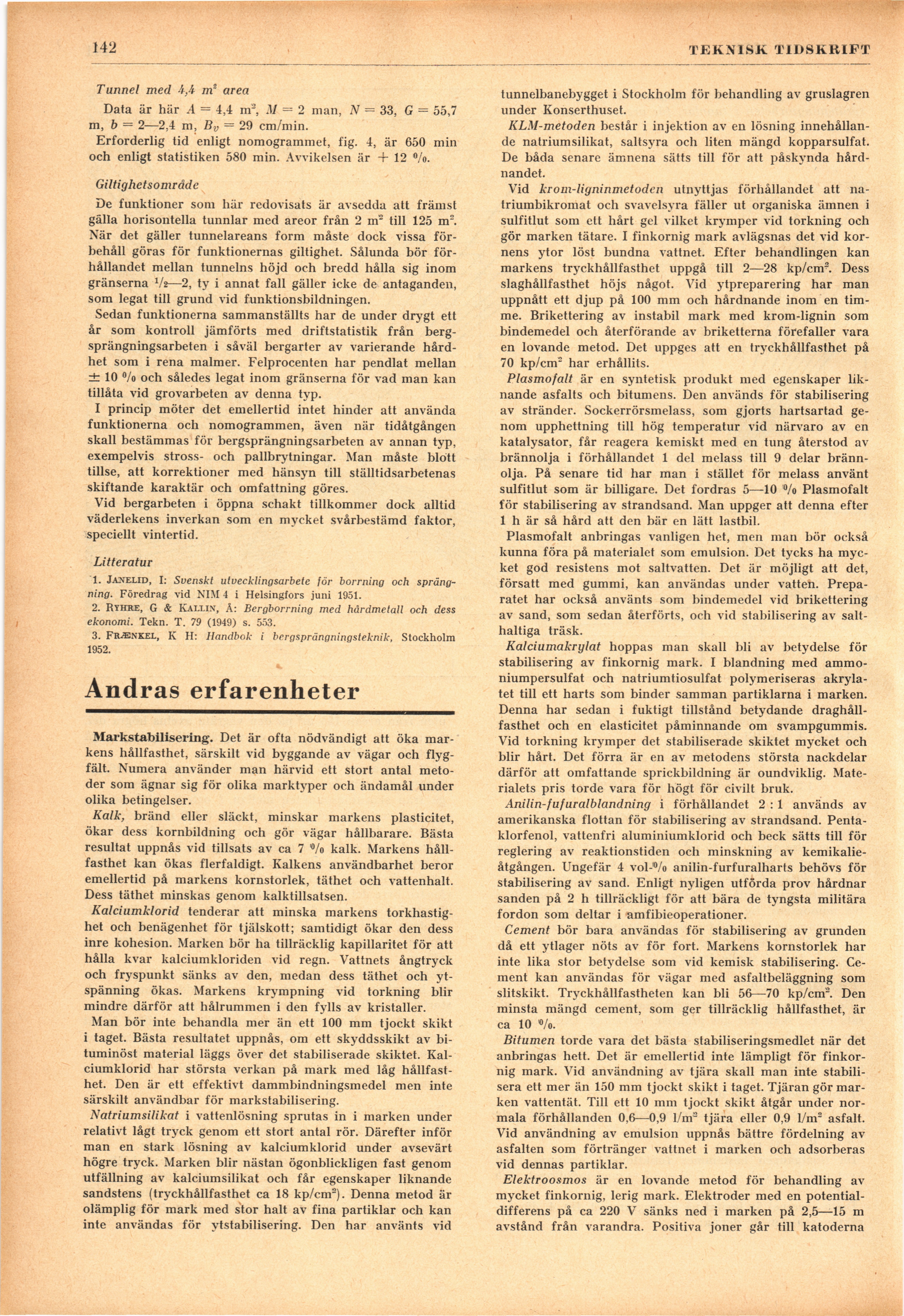Full resolution (JPEG) - On this page / på denna sida - H. 8. 24 februari 1953 - Beräkning av arbetstid vid tunnelsprängning med hårdmetallborrning, av Karl-Heinz Frænkel och Sten Wallin - Andras erfarenheter - Markstabilisering, av SHl