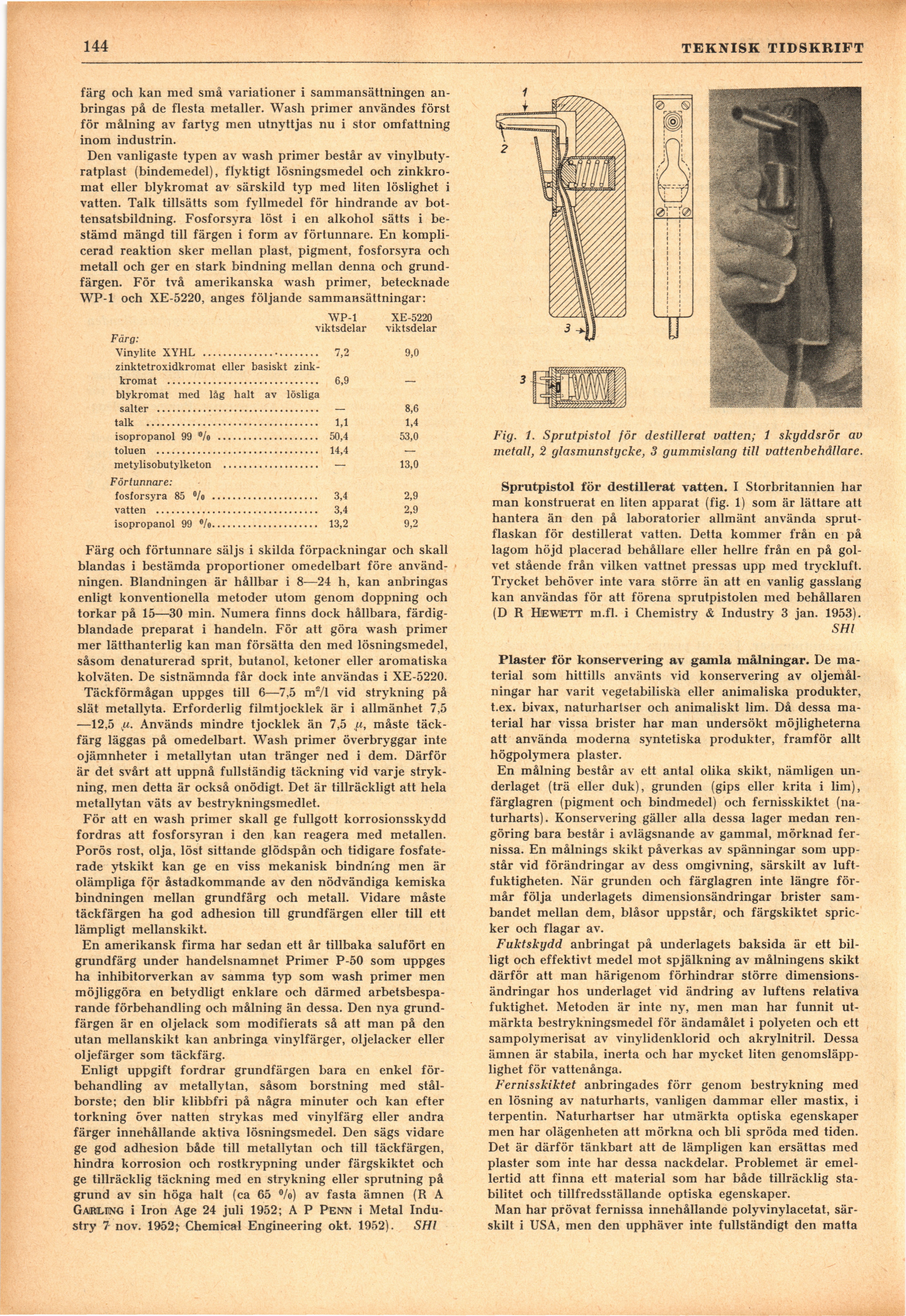 Full resolution (JPEG) - On this page / på denna sida - H. 8. 24 februari 1953 - Andras erfarenheter - Grundfärger med korrosionsinhibitor, av SHl - Sprutpistol för destillerat vatten, av SHl - Plaster för konservering av gamla målningar, av SHl