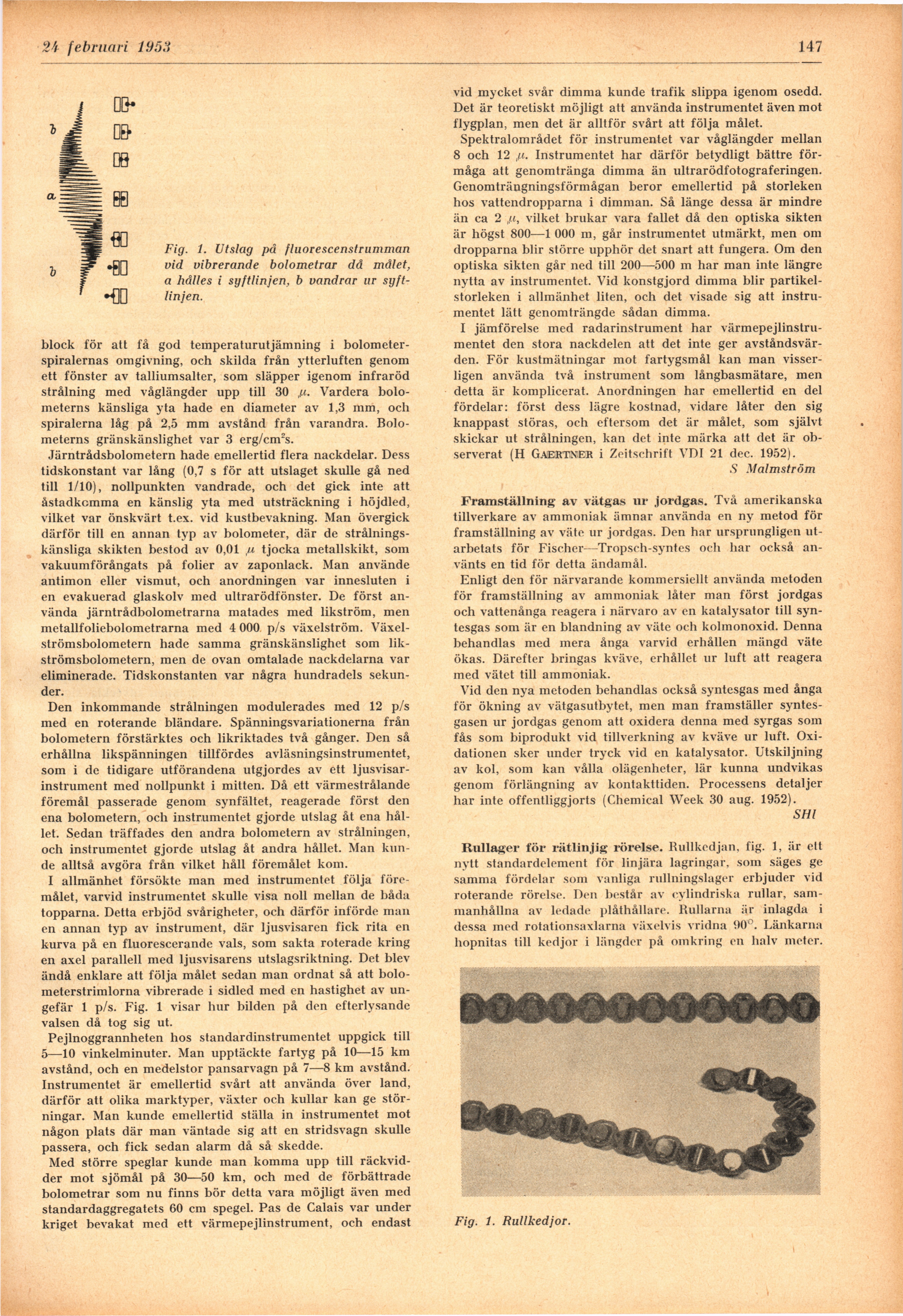 Full resolution (JPEG) - On this page / på denna sida - H. 8. 24 februari 1953 - Nya metoder - Pejl- och observationsinstrument för värmestrålning, av S Malmström - Framställning av vätgas ur jordgas, av SHl - Rullager för rätlinjig rörelse, av sah