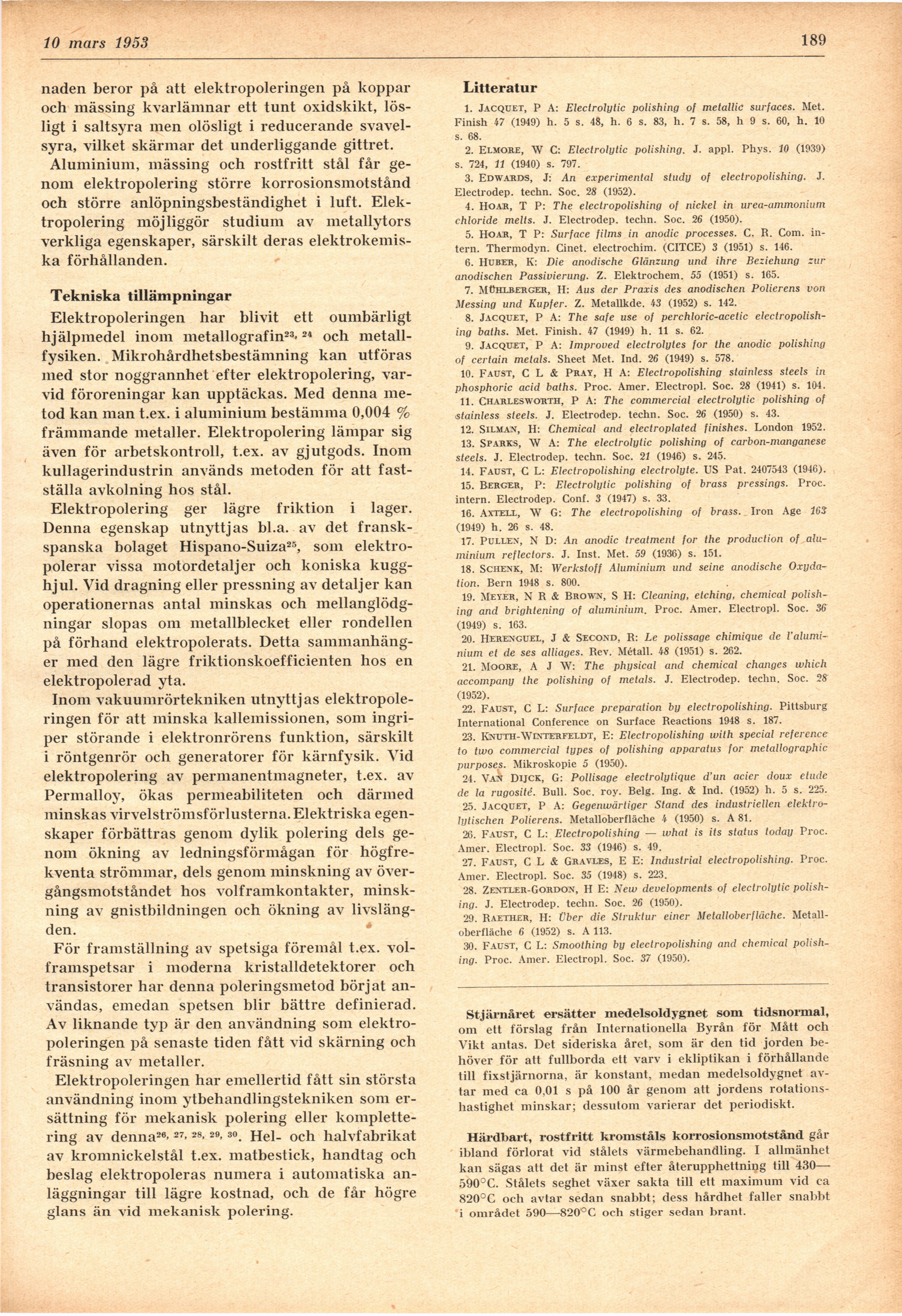 Full resolution (JPEG) - On this page / på denna sida - H. 10. 10 mars 1953 - Elektrolytisk och kemisk polering av metaller, av Uno Trägårdh - Stjärnåret ersätter medelsoldygnet - Härdbart, rostfritt kromståls korrosionsmotstånd