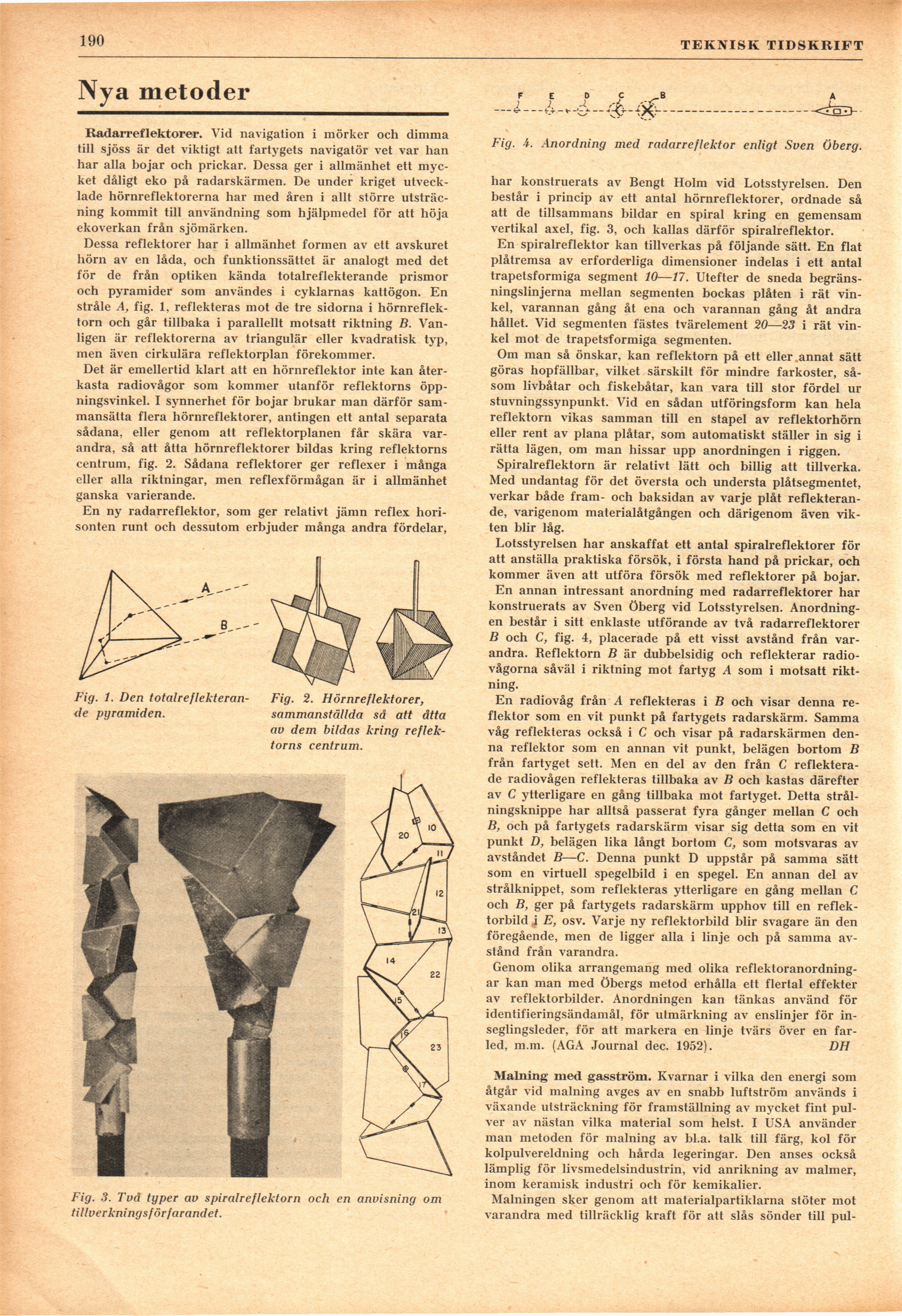 Full resolution (JPEG) - On this page / på denna sida - H. 10. 10 mars 1953 - Nya metoder - Radarreflektorer, av DH - Malning med gasström, av SHl
