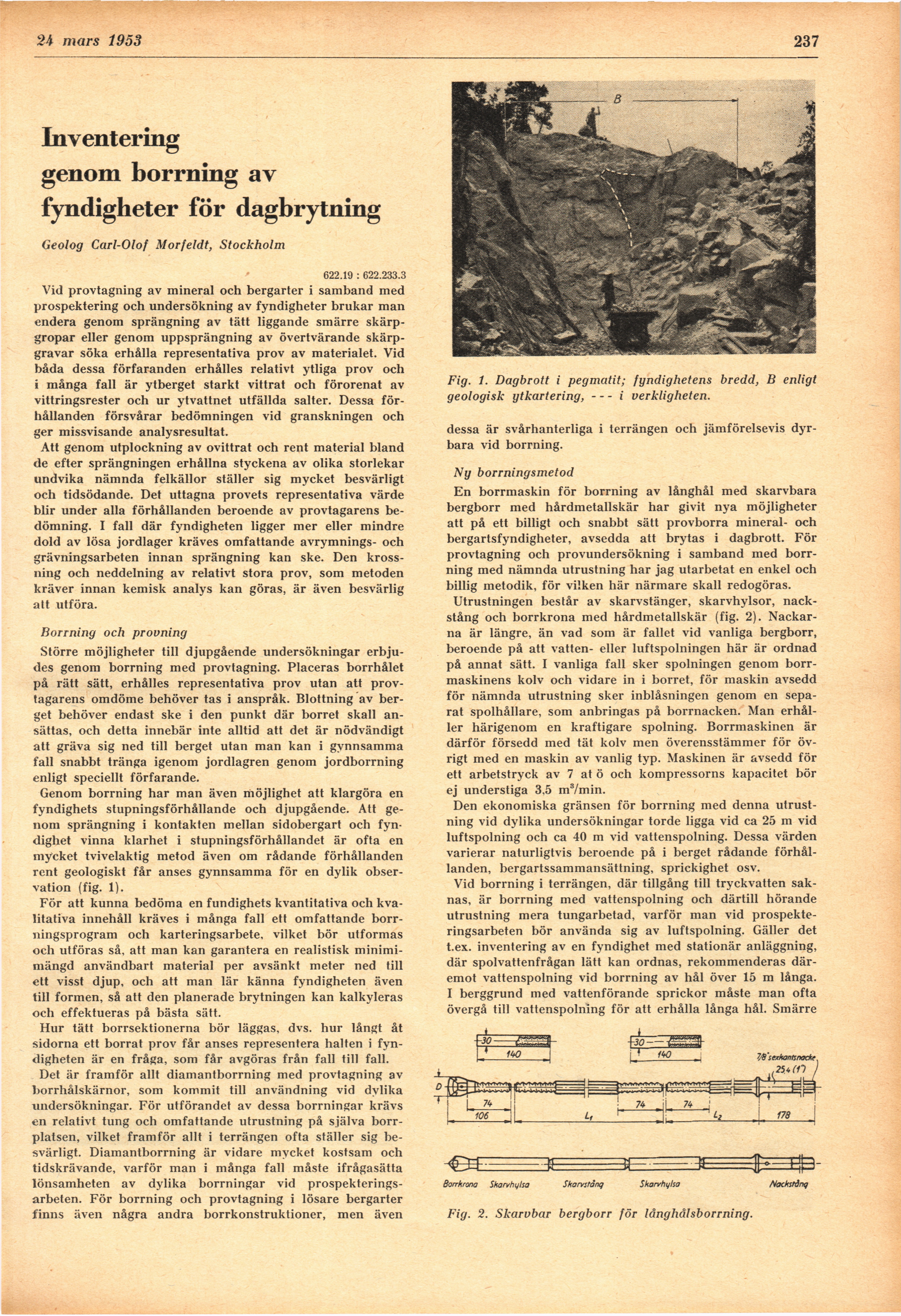 Full resolution (JPEG) - On this page / på denna sida - H. 12. 24 mars 1953 - Inventering genom borrning av fyndigheter för dagbrytning, av Carl-Olof Morfeldt