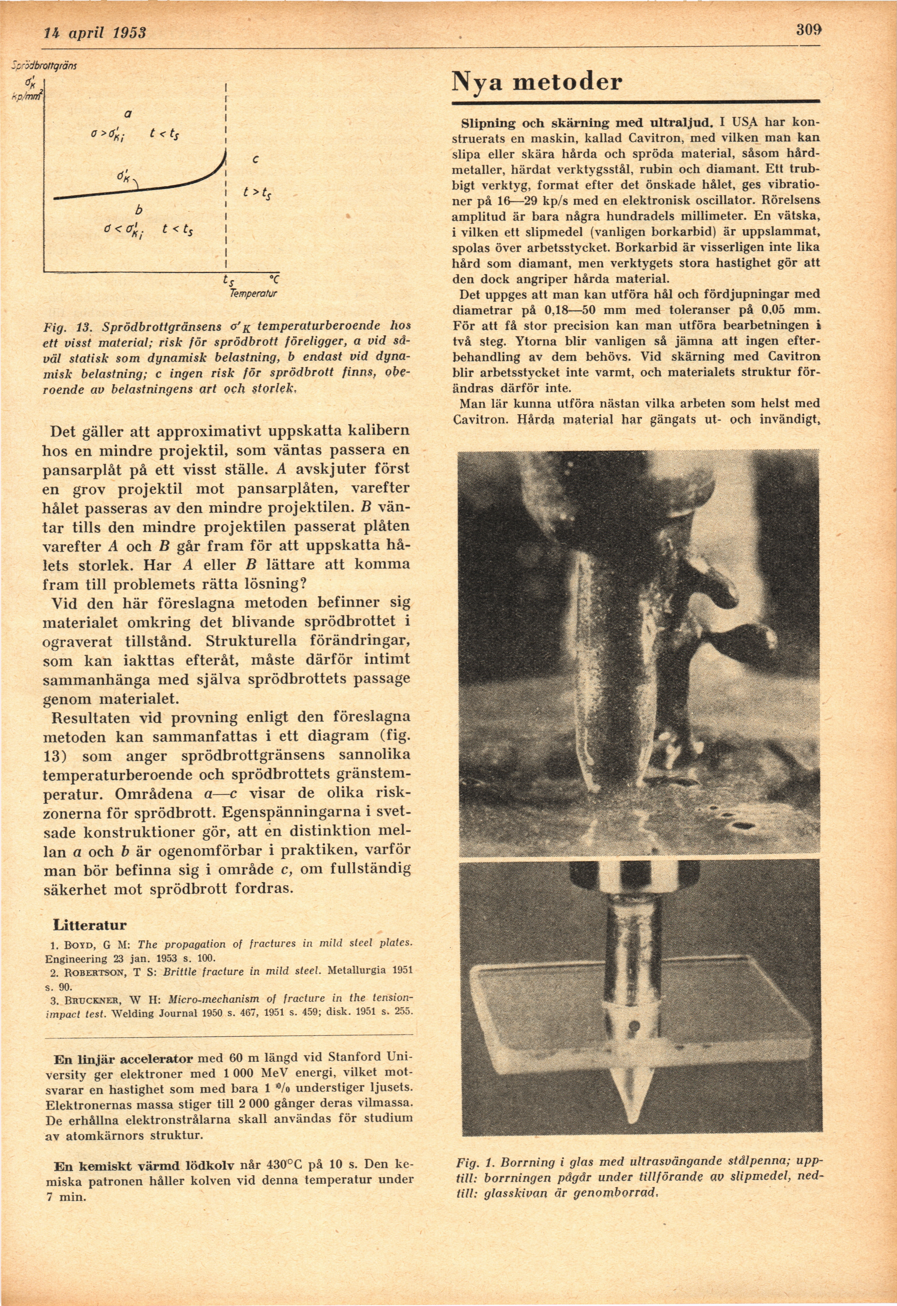 Full resolution (JPEG) - On this page / på denna sida - H. 15. 14 april 1953 - Det spröda brottets uppkomst och fortplantning, av Cyrill Schaub - En linjär accelerator - En kemiskt värmd lödkolv - Nya metoder - Slipning och skärning med ultraljud, av SHl