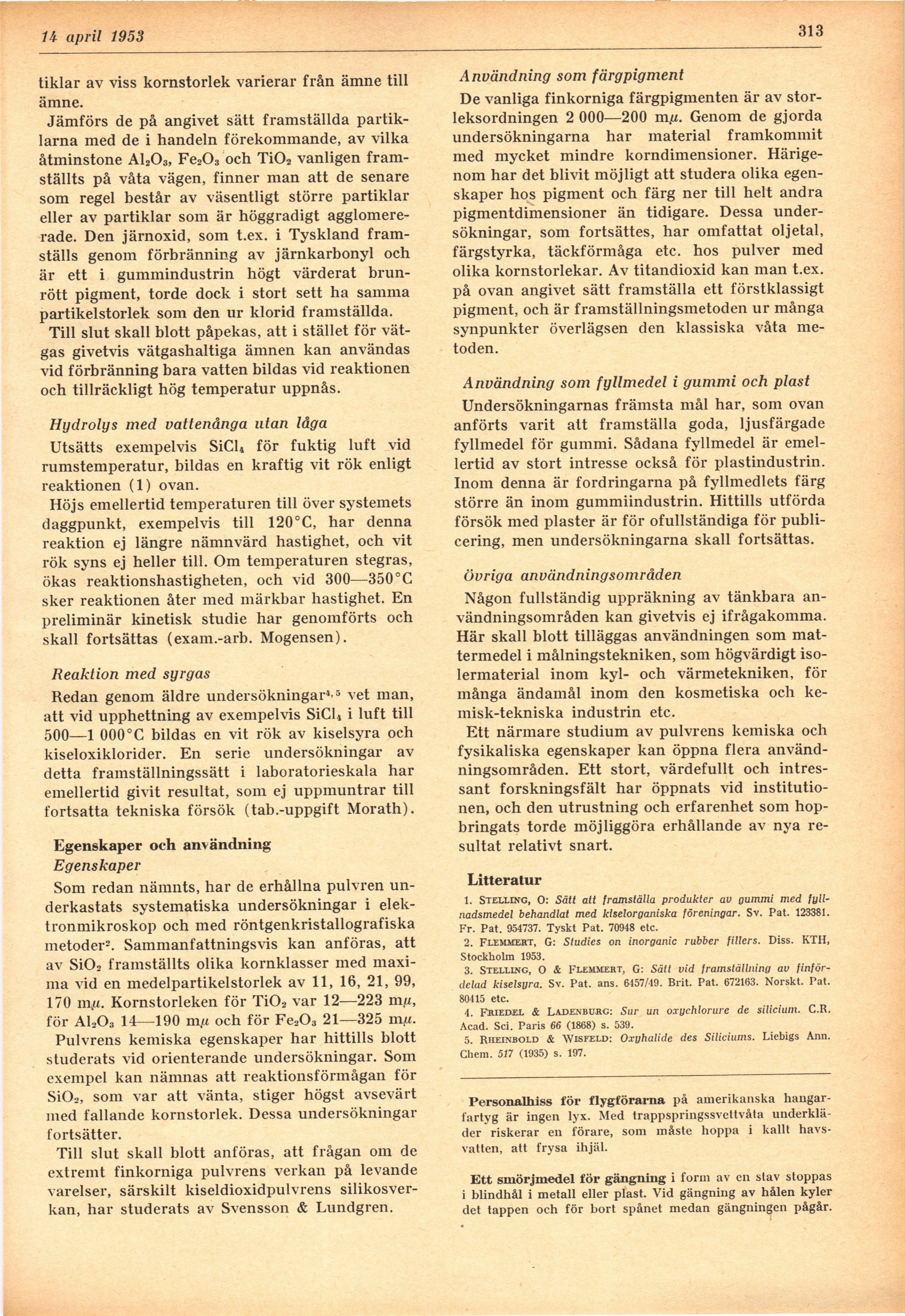 Full resolution (JPEG) - On this page / på denna sida - H. 15. 14 april 1953 - Extremt finfördelade oorganiska pulverformiga substanser, av Otto Stelling och Gösta Flemmert - Personalhiss för flygförarna - Ett smörjmedel för gängning