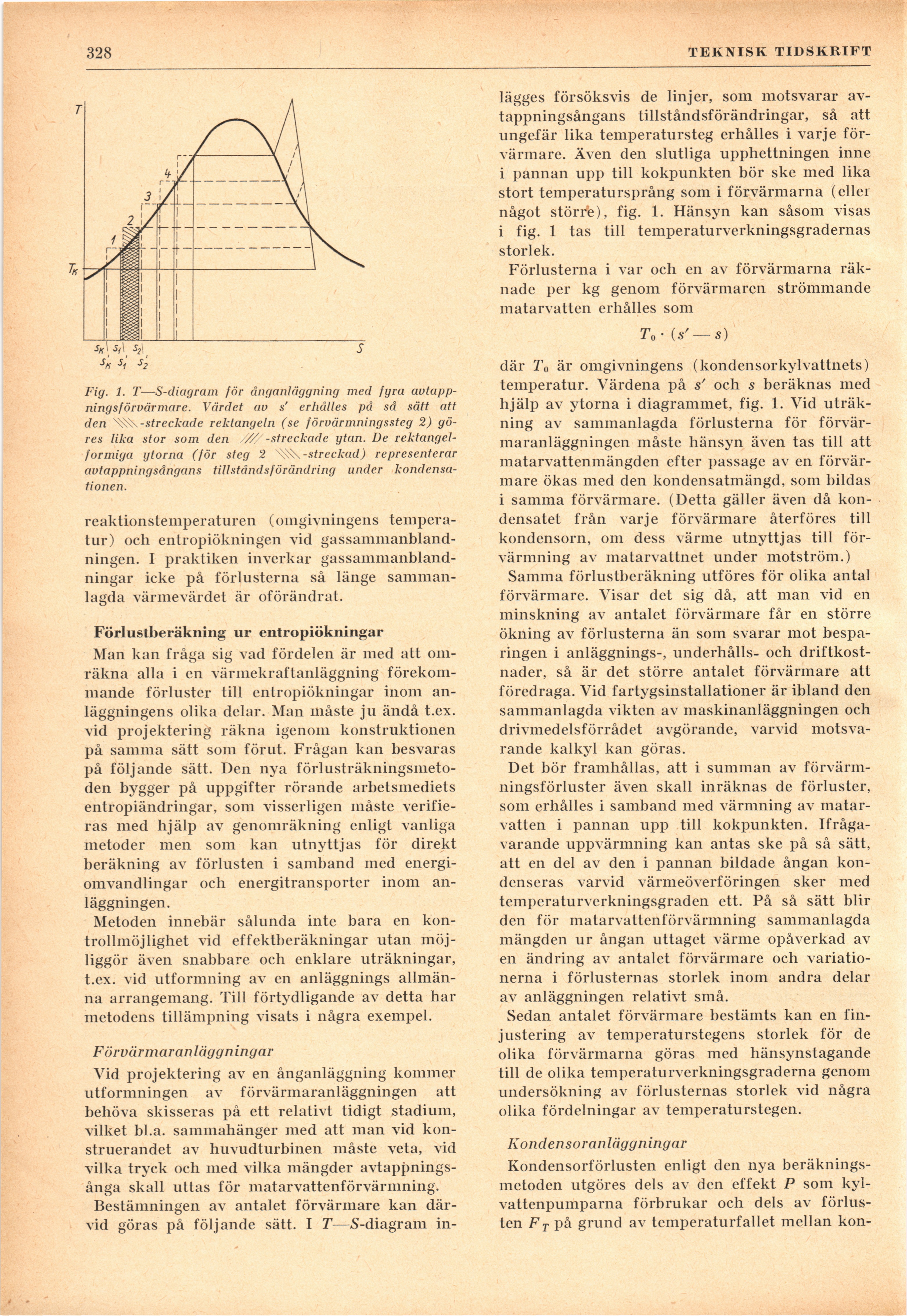 Fig. 1. T—S-diagram för ånganläggning med fyra