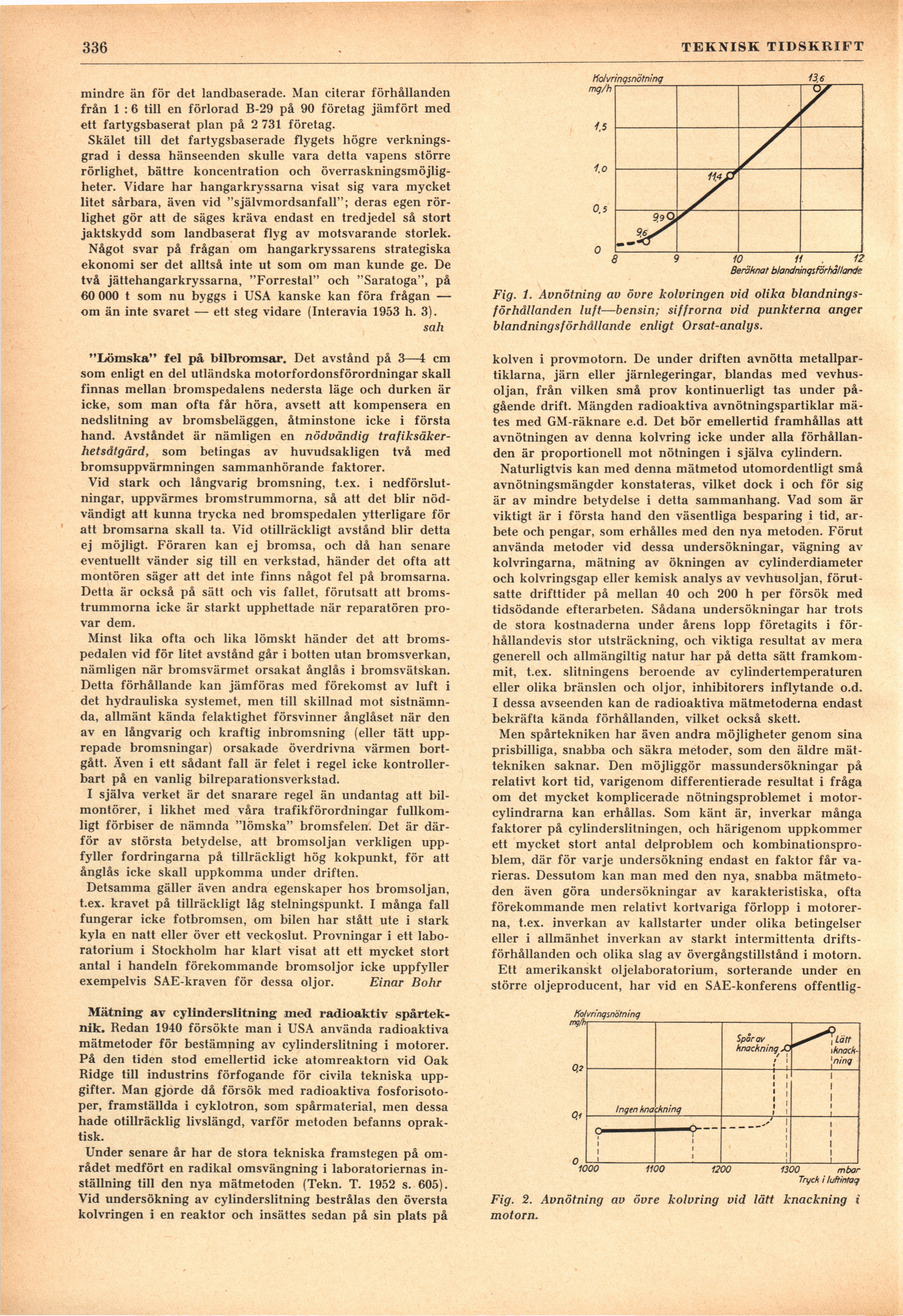 Full resolution (JPEG) - On this page / på denna sida - H. 16. 21 april 1953 - Andras erfarenheter - Är hangarkryssarna ekonomiska? av sah - »Lömska» fel på bilbromsar, av Einar Bohr - Mätning av cylinderslitning med radioaktiv spårteknik, av E Br