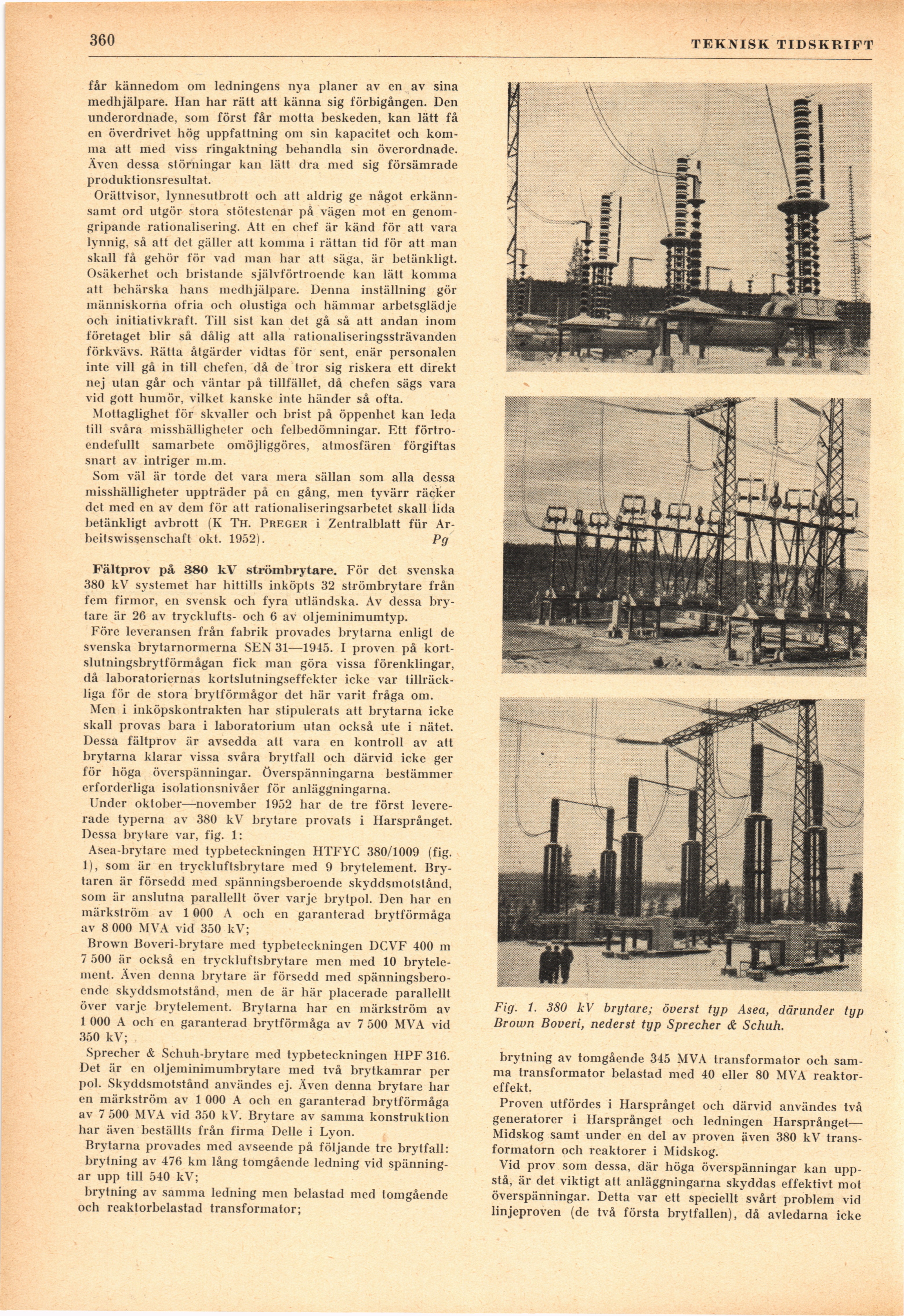 Full resolution (JPEG) - On this page / på denna sida - H. 17. 28 april 1953 - Andras erfarenheter - Rationalisering skall börja i toppen, av Pg - Fältprov på 380 kV strömbrytare, av Uno Sandström