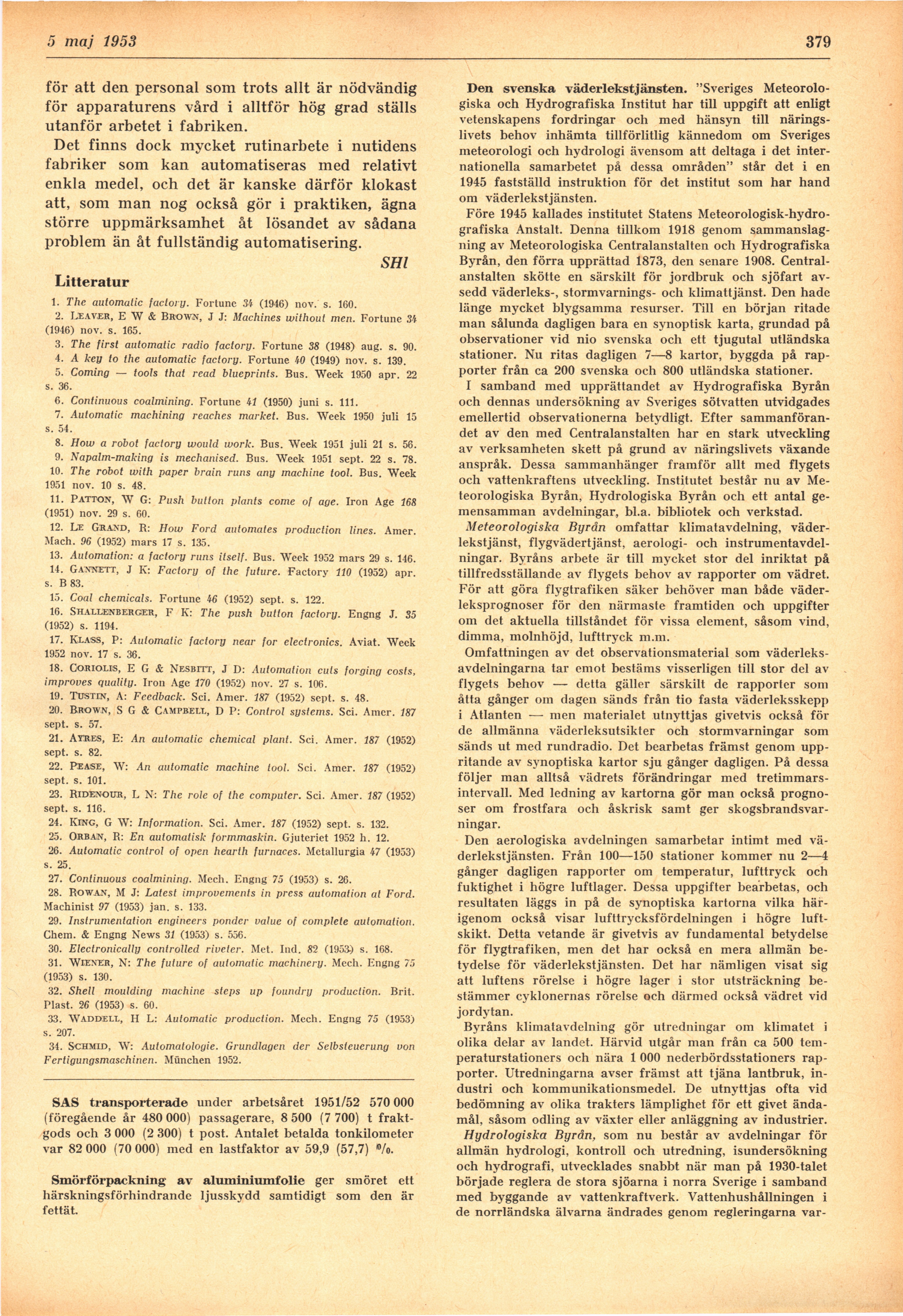 Full resolution (JPEG) - On this page / på denna sida - H. 18. 5 maj 1953 - Kan den helautomatiska fabriken bli verklighet? - SAS transporterade - Smörförpackning av aluminiumfolie - Den svenska väderlekstjänsten, av SHl