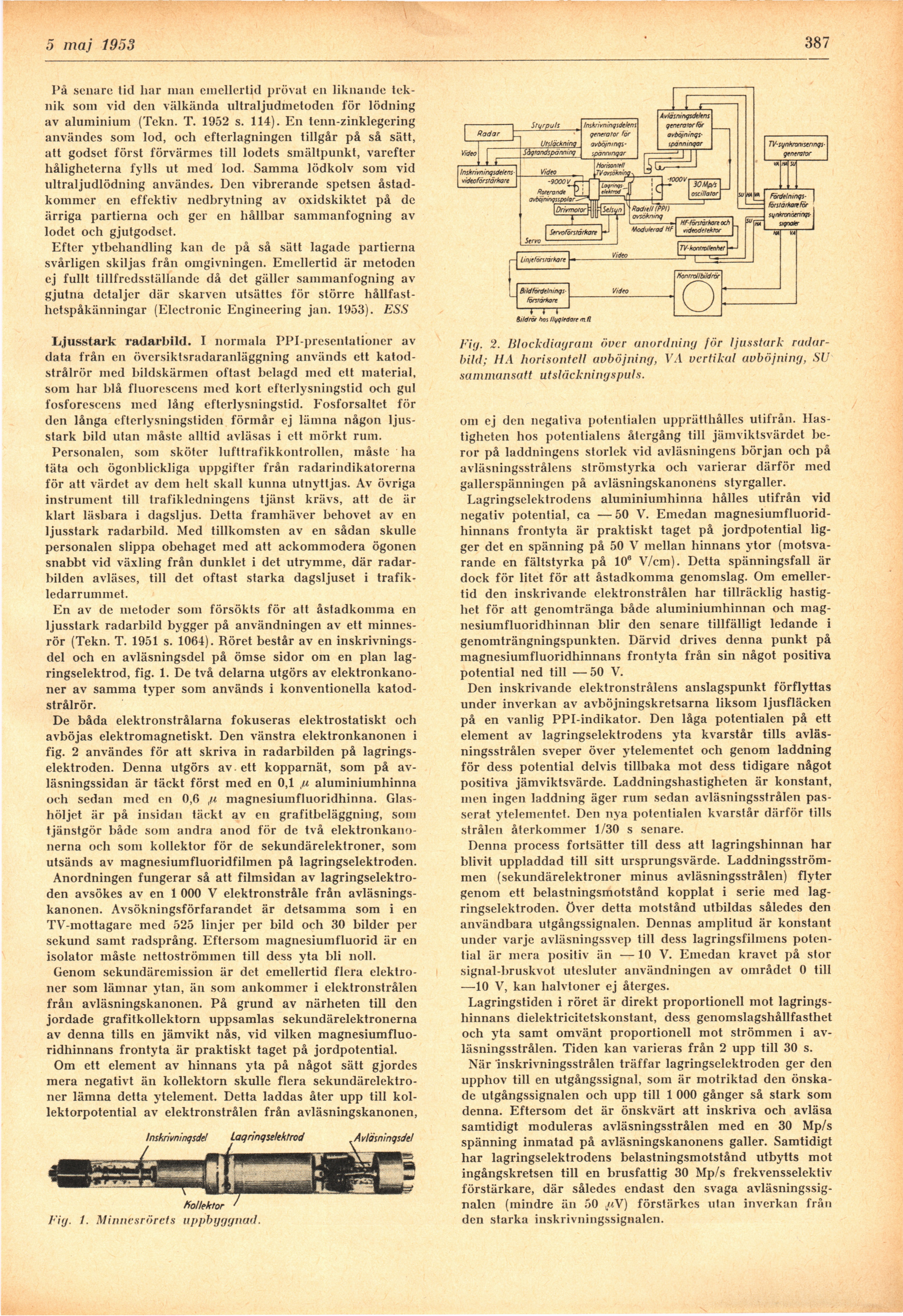 Full resolution (JPEG) - On this page / på denna sida - H. 18. 5 maj 1953 - Nya metoder - Ultraljud i gjuteritekniken, av ESS - Ljusstark radarbild, av SF