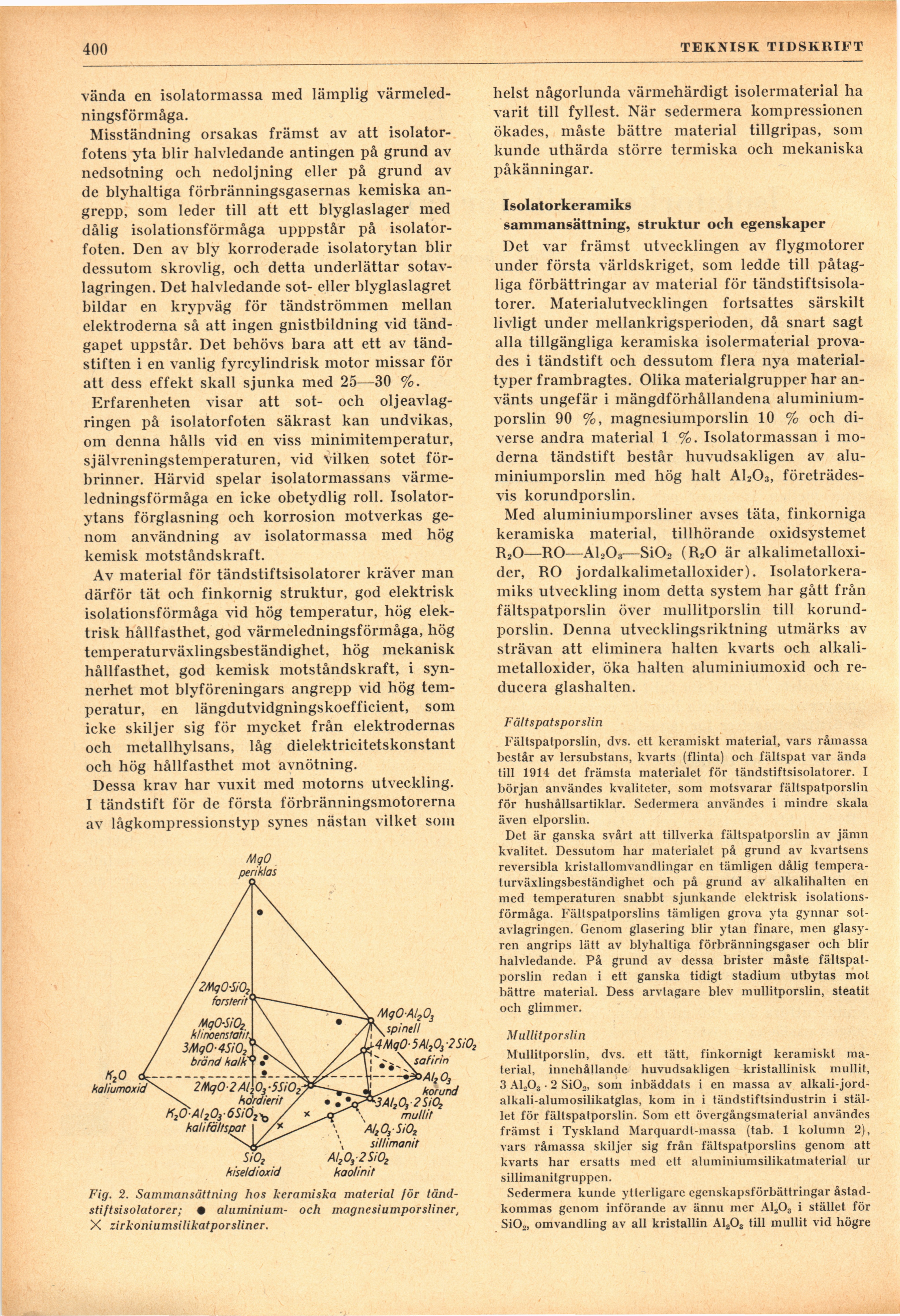 tändstiftsisolatorer. Materialutvecklingen fortsattes särskilt
