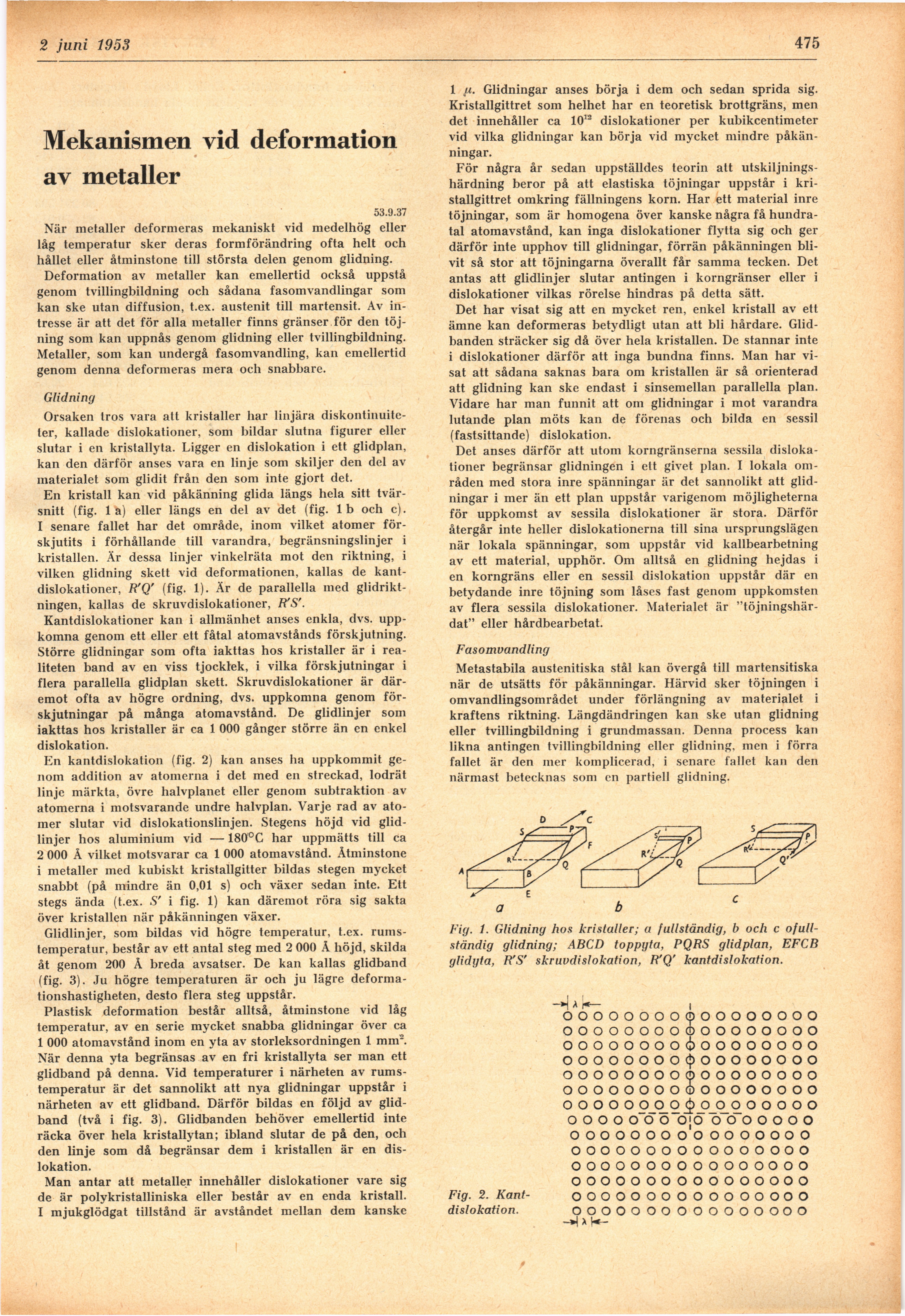 Full resolution (JPEG) - On this page / på denna sida - H. 22. 2 juni 1953 - Mekanismen vid deformation av metaller, av SHl
