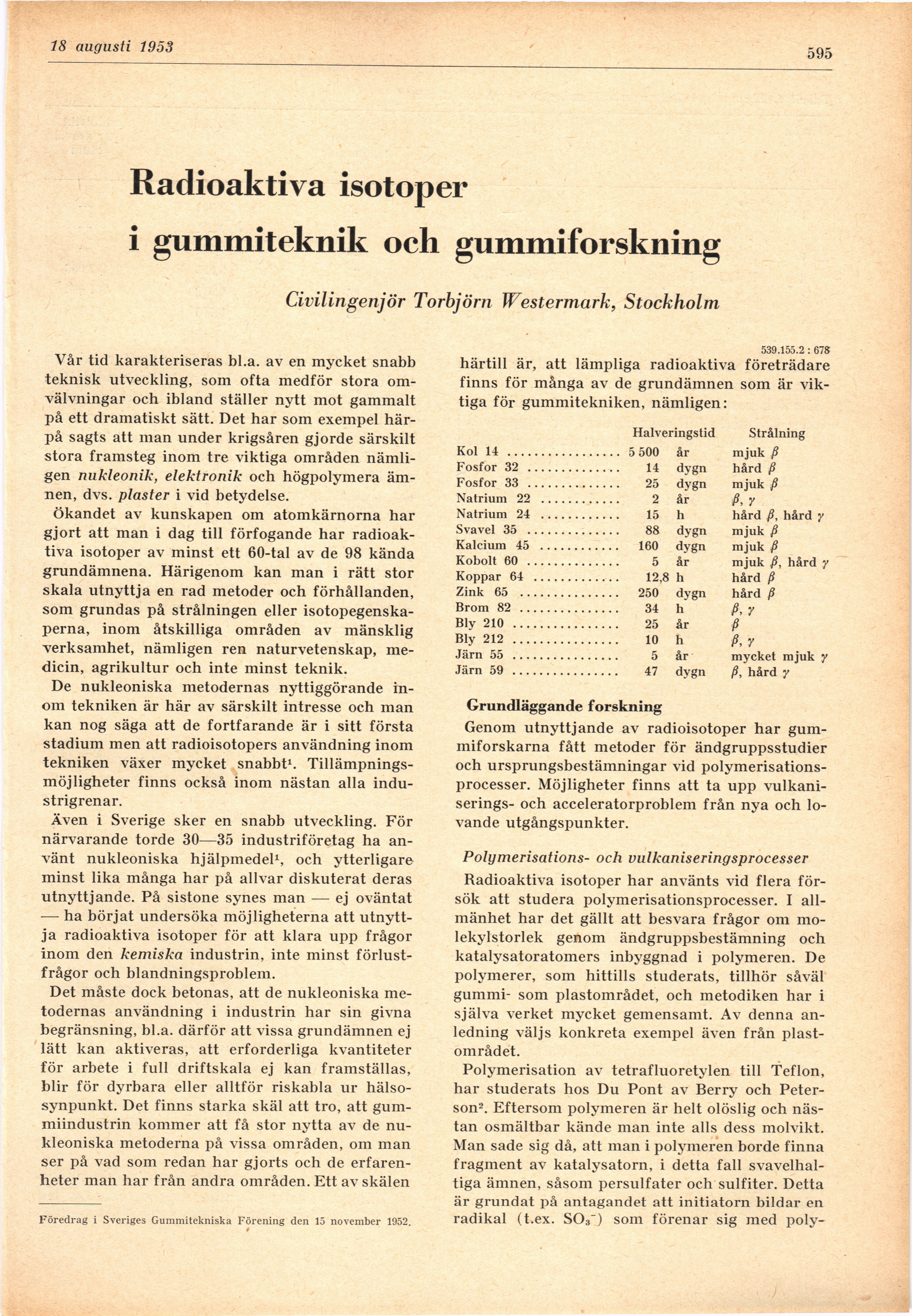 Full resolution (JPEG) - On this page / på denna sida - H. 29. 18 augusti 1953 - Radioaktiva isotoper i gummiteknik och gummiforskning, av Torbjörn Westermark