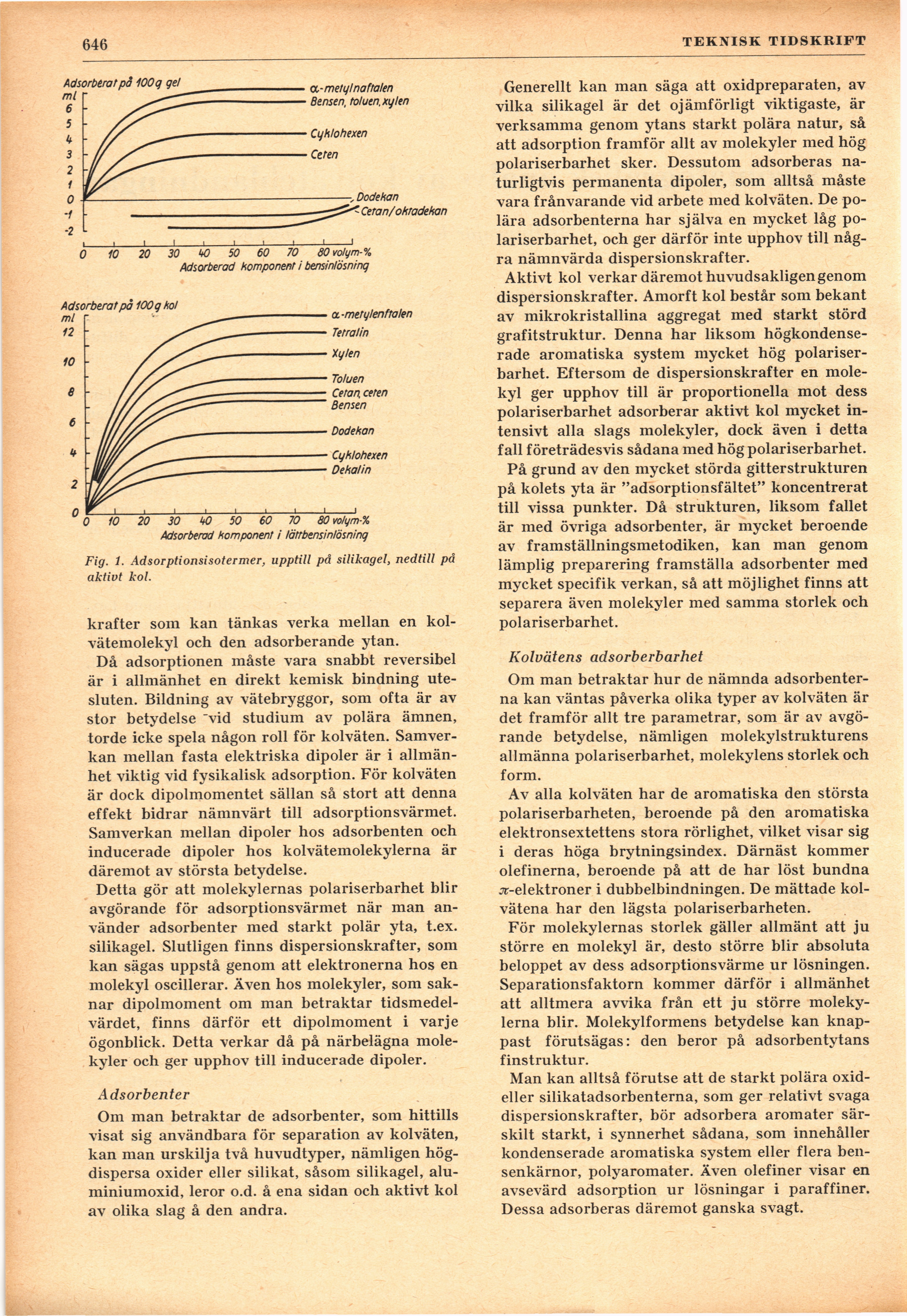 Fig. 1. Adsorptionsisotermer, upptill på silikagel, nedtill på