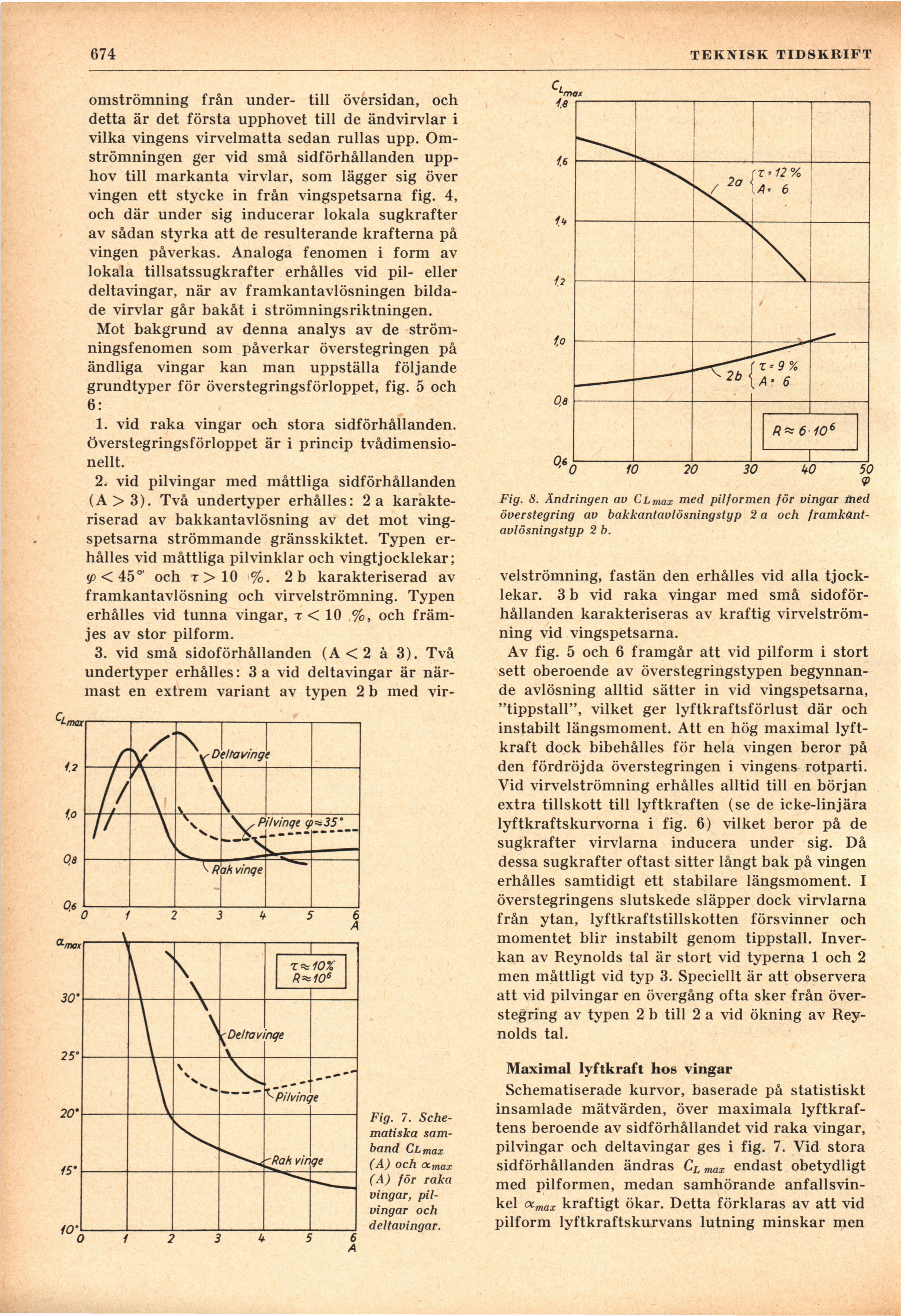 pilvingar och deltavingar ges i fig. 7. Vid stora