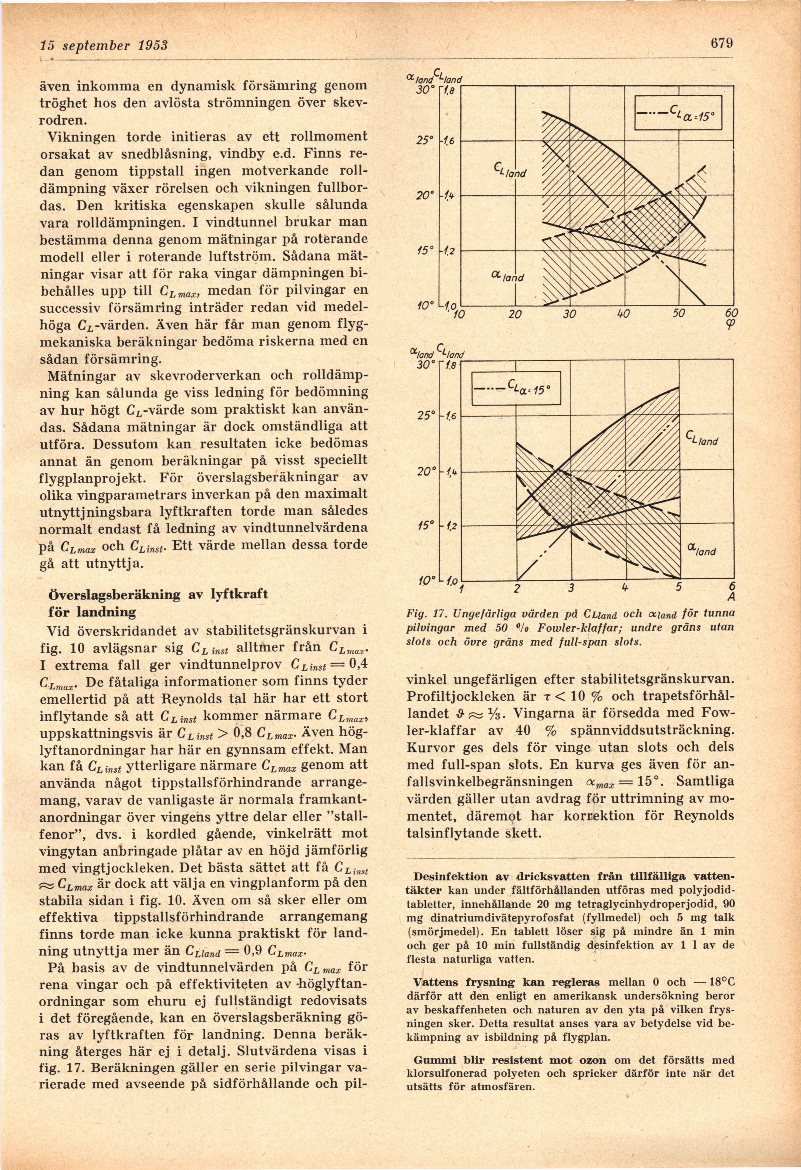 Full resolution (JPEG) - On this page / på denna sida - H. 33. 15 september 1953 - Överstegring och maximal lyftkraft hos pil- och deltavingade flygplan, av Hans Olof Palme - Desinfektion av dricksvatten från tillfälliga vattentäkter - Vattens frysning kan regleras - Gummi blir resistent mot ozon