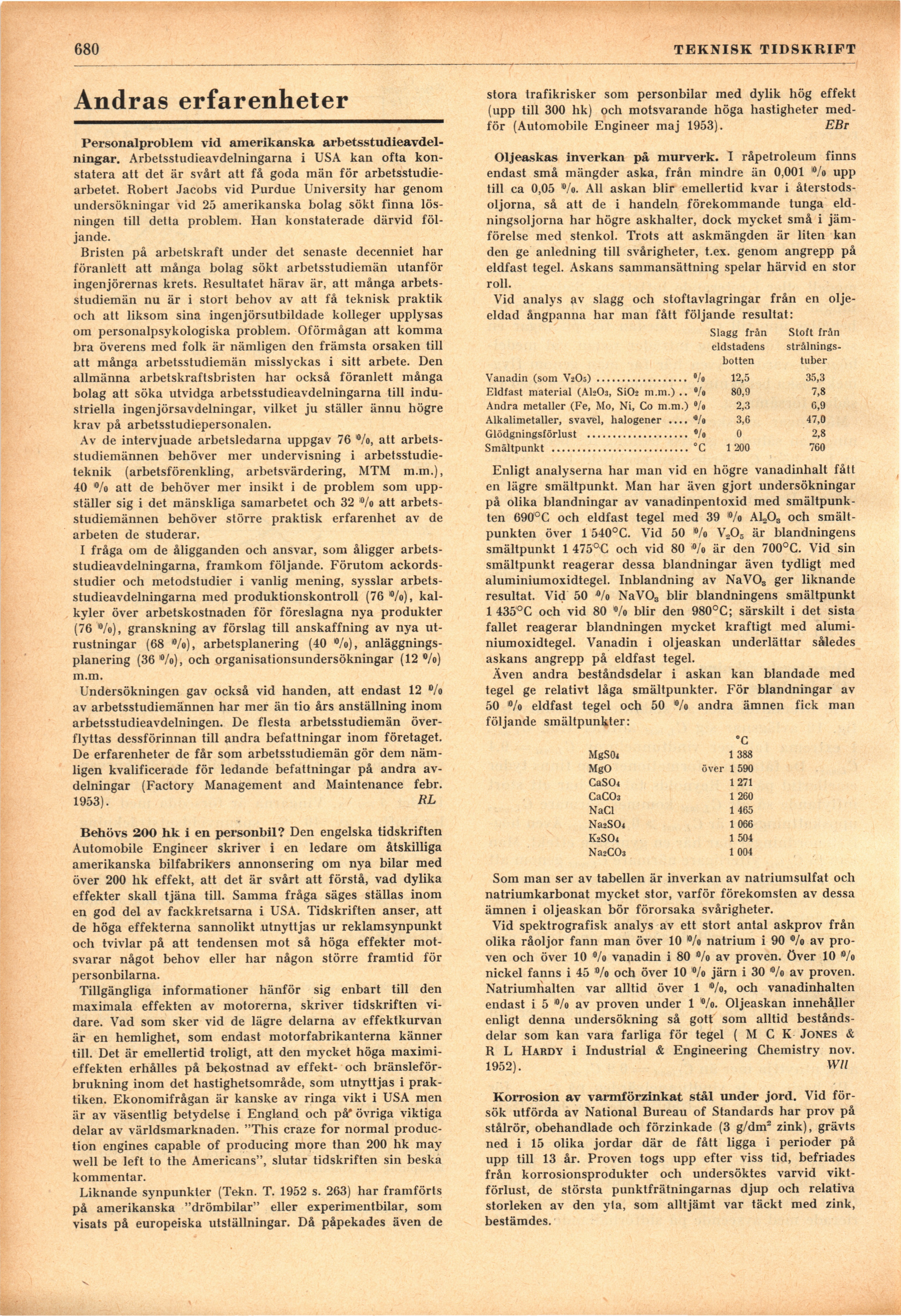 Full resolution (JPEG) - On this page / på denna sida - H. 33. 15 september 1953 - Andras erfarenheter - Personalproblem vid amerikanska arbetsstudieavdelningar, av RL - Behövs 200 hk i en personbil? av EBr - Oljeaskas inverkan på murverk, av Wll - Korrosion av varmförzinkat stål under jord, av SHl
